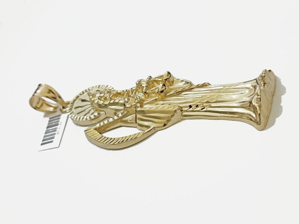 Real 10k Gold Ripper Charm Pendant Mens 4.2 Inch Real 10kt Yellow Gold For Chain