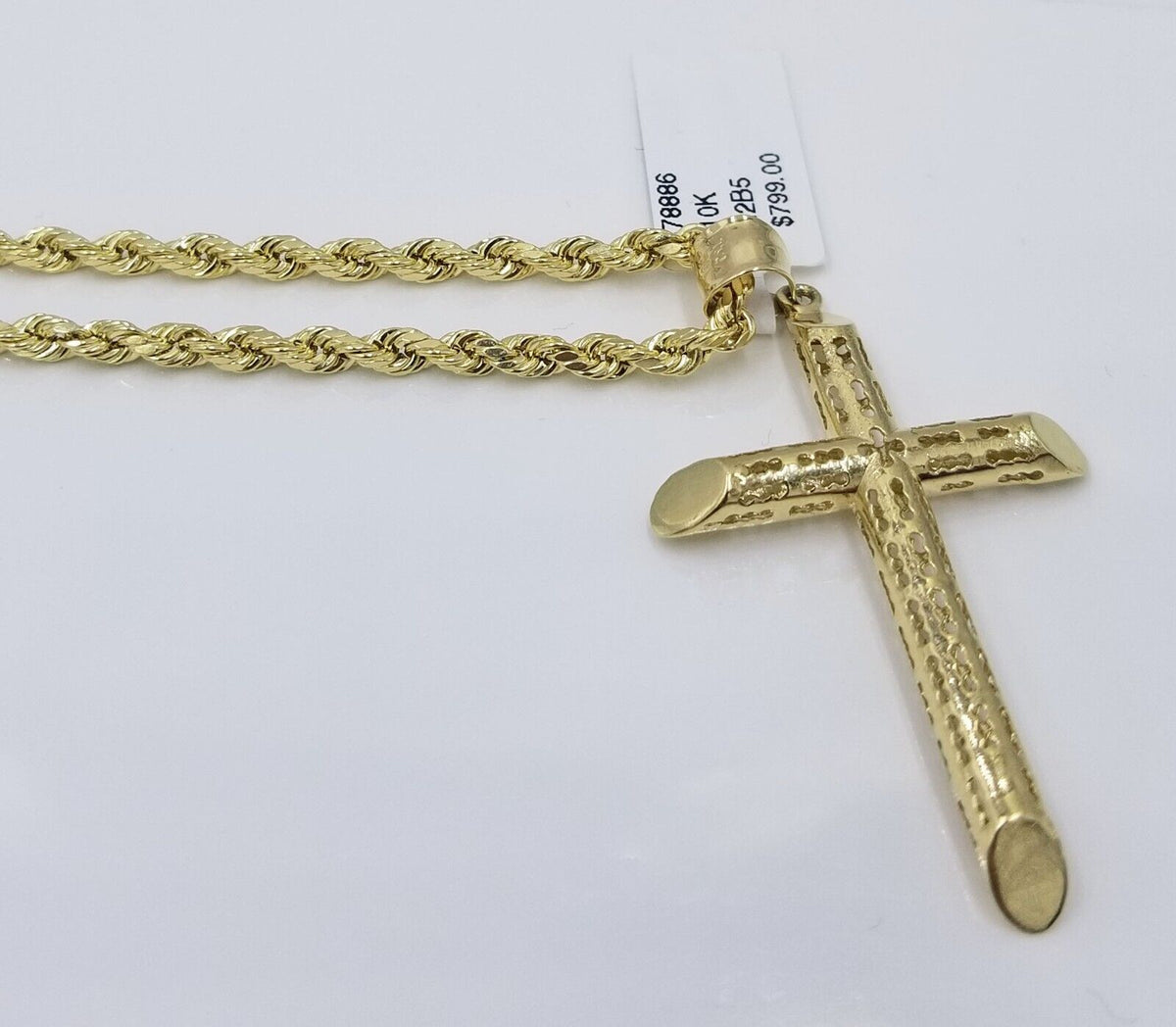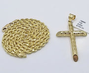 Real 10k Gold Rope Chain Cross Pendant, 3mm Necklace 20" inch With Charm, 10kt