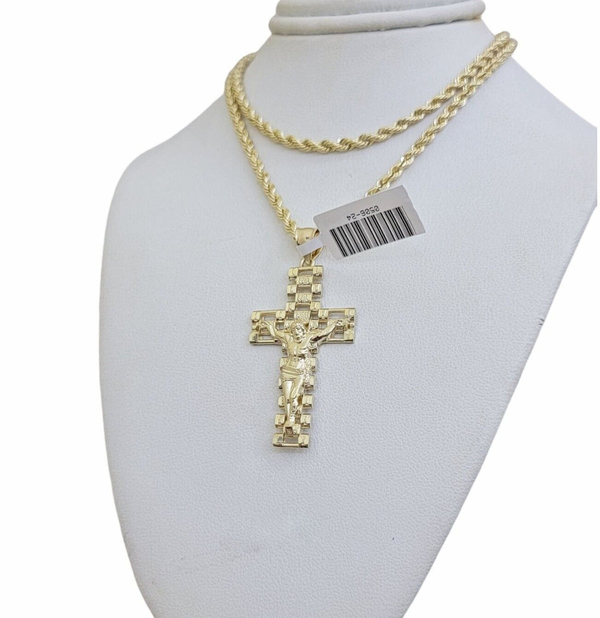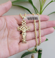 Real 10k Gold Rope Chain Cross SET 3mm 18-30" Inch Necklace Jesus Charm Pendant