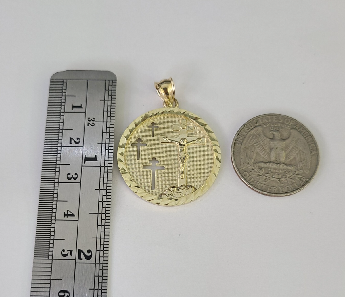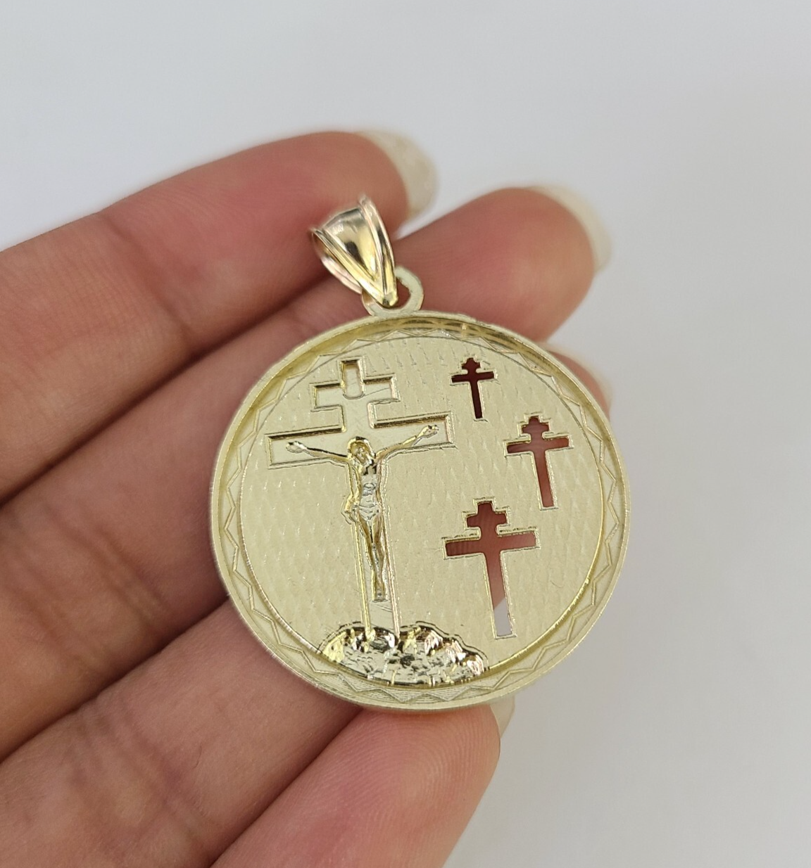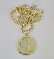 REAL 10k Rope Chain Jesus Medallion Cross Charm Pendant 4mm Necklace Set 18"-28"