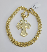 REAL 10k Rope Chain Jesus Cross Charm Pendant 4mm Necklace Set 18"-28"