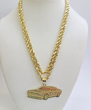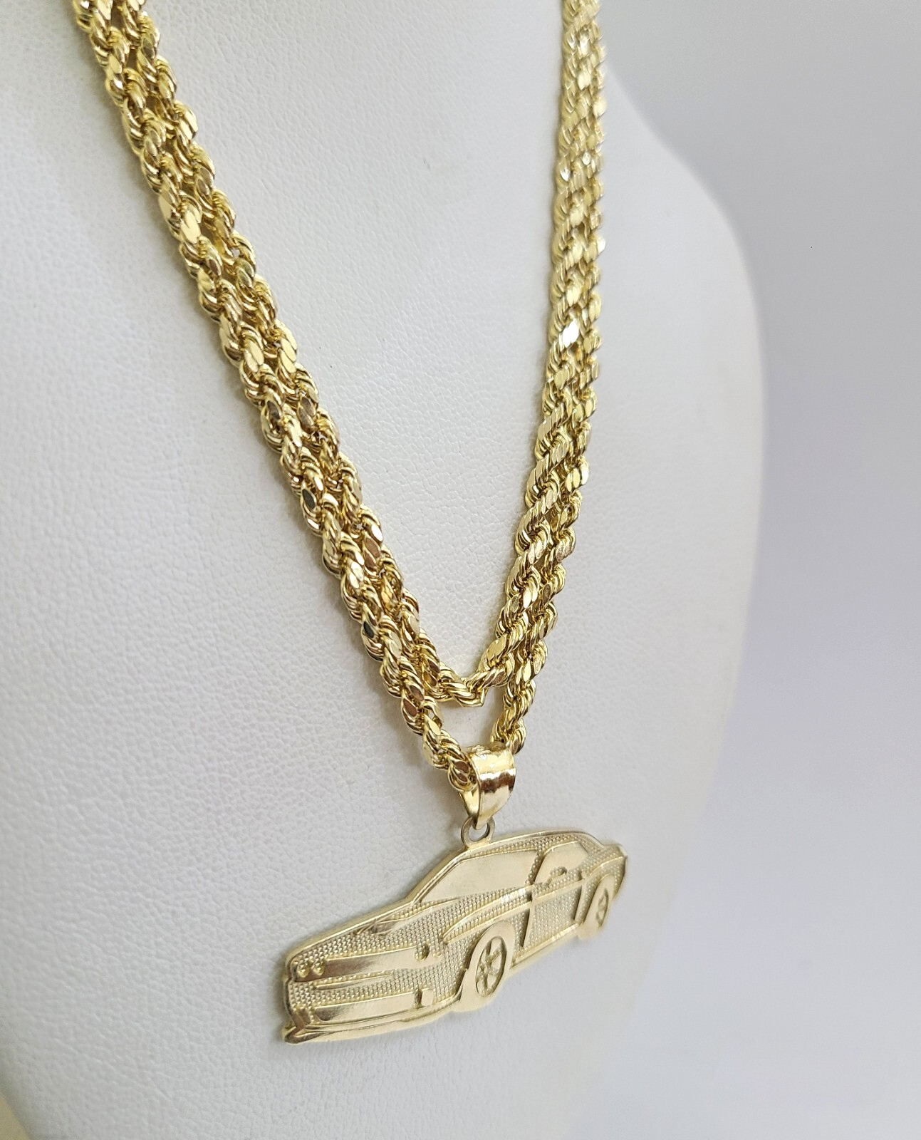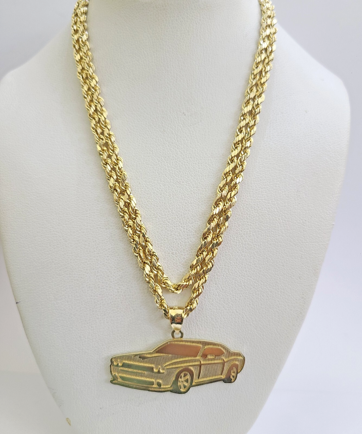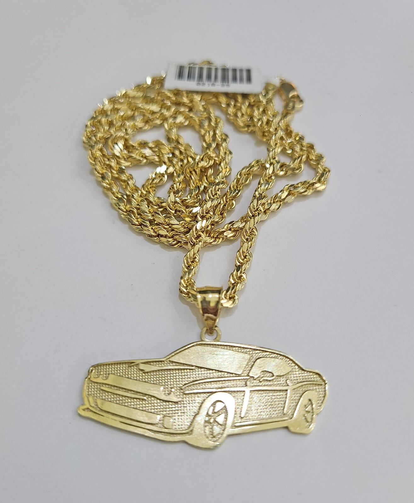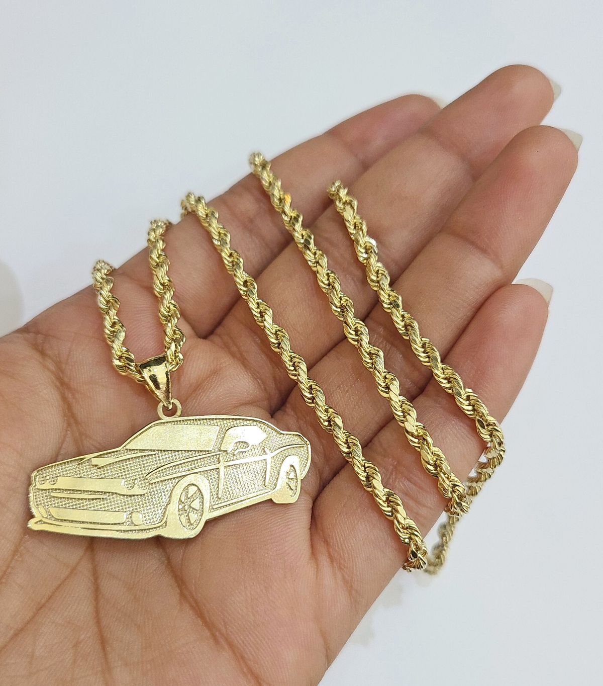 REAL 10k Rope Chain Car Challenger Charm Pendant 3mm Necklace Set 18"-28"