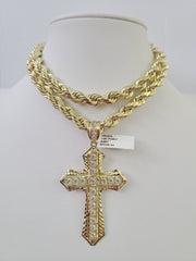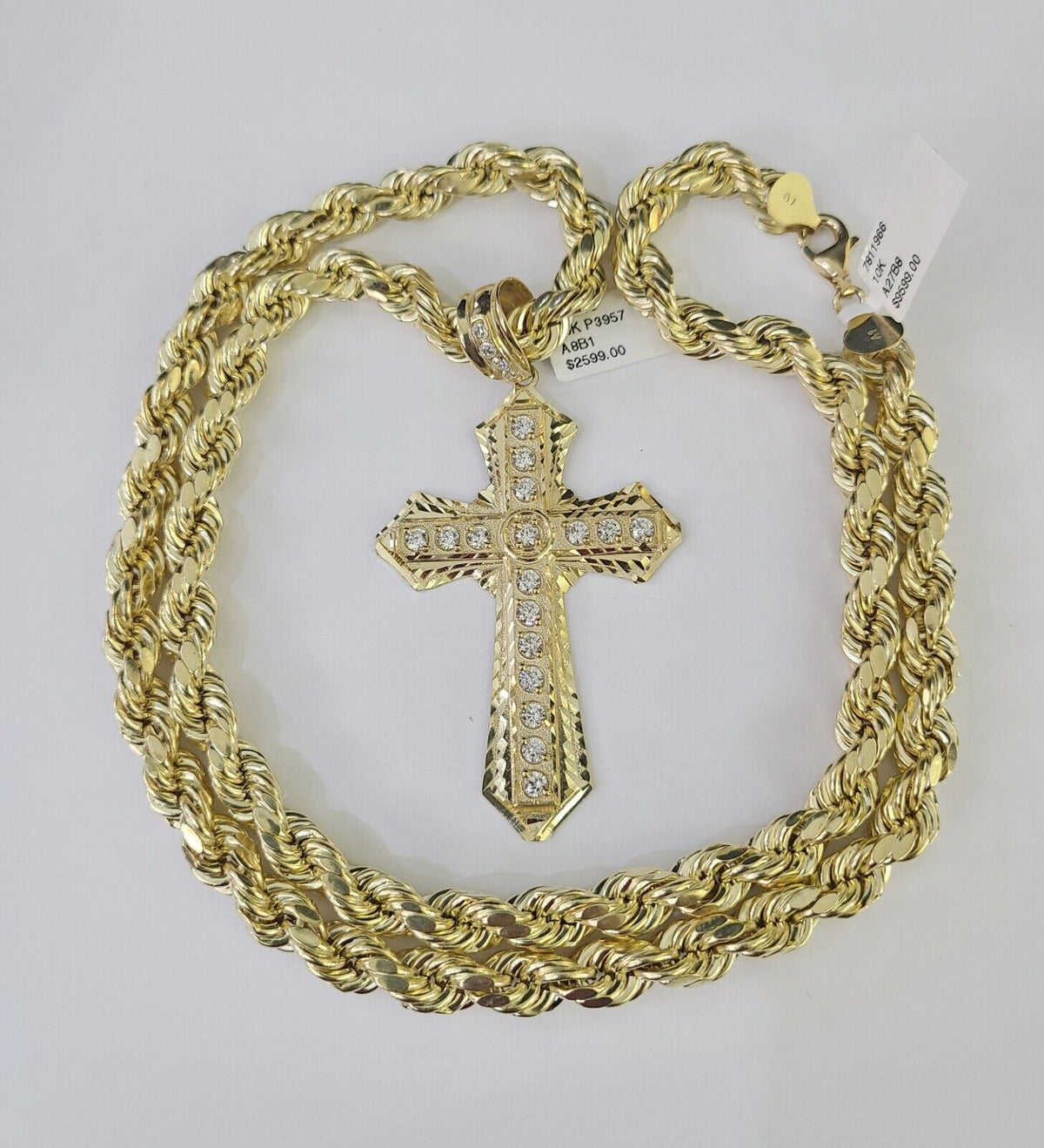 Is Presenting You with This Absolutely Stunning Real 10k Yellow Gold Rope Chain 8mm, 20 inch-30 inches, Lobster Lock with a 10k Jesus Cross Charm Pendant. These Beautiful chains and Pendant will not tarnish, discolor, or fade because they are Pure 10K Gold. We also have them in various another length and sizes. 26"-A27B8 A8B1