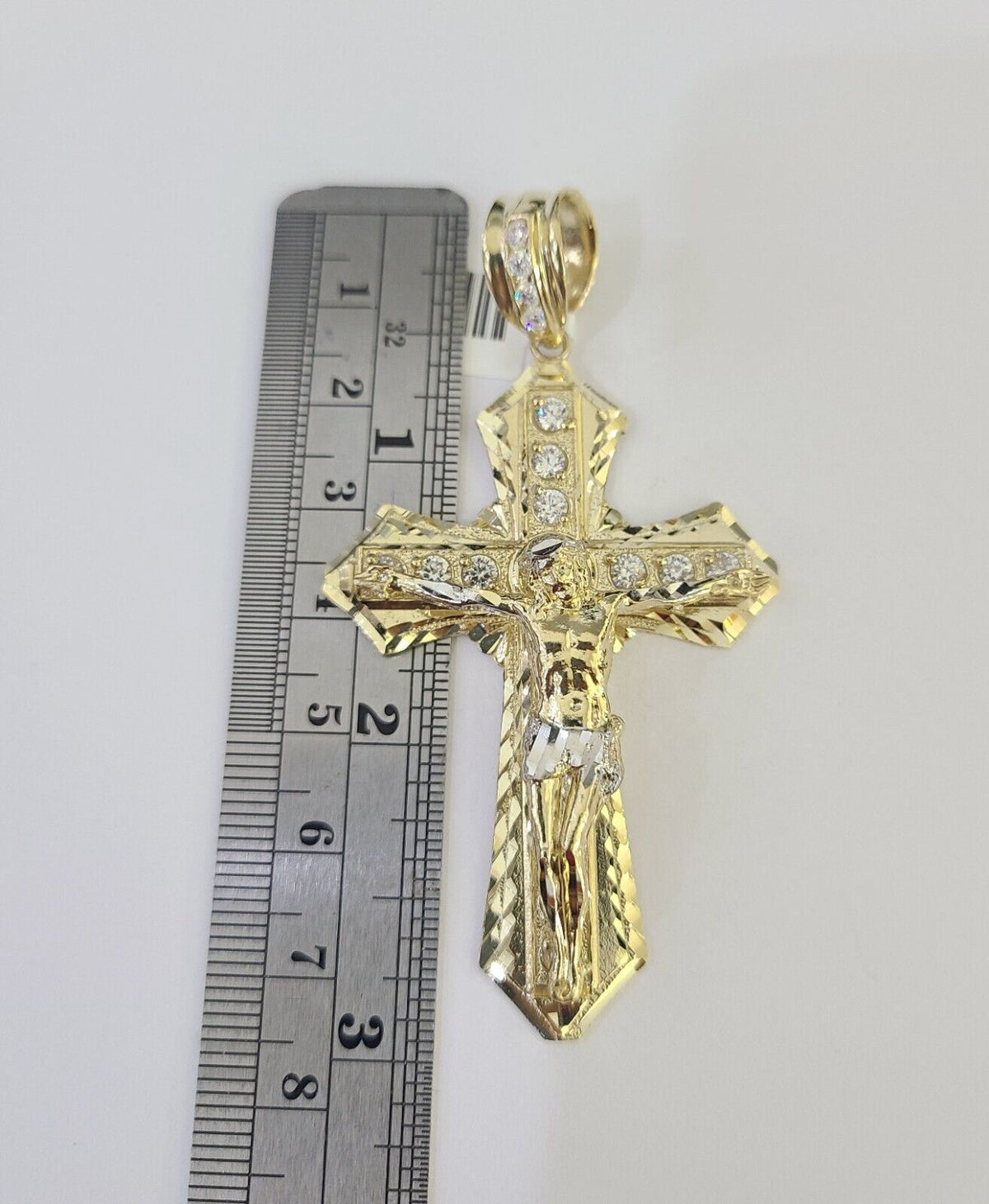 Is Presenting You with This Absolutely Stunning Real 10k Yellow Gold Rope Chain 8mm, 20 inch-30 inches, Lobster Lock with a 10k Jesus Cross Charm Pendant. These Beautiful chains and Pendant will not tarnish, discolor, or fade because they are Pure 10K Gold. We also have them in various another length and sizes. 26"-A27B8 A10B0