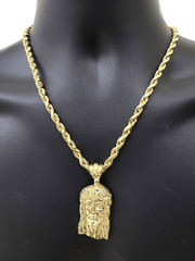 REAL 10k Rope Chain And Charm Pendant 5mm Necklace Jesus face Set 18"-28"