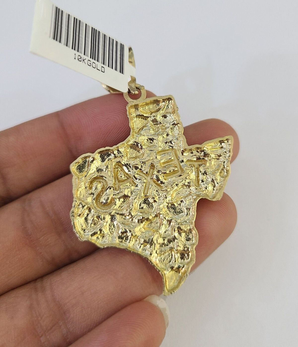 Is Presenting You with This Absolutely Stunning Real 10k Yellow Gold Rope Chain 7mm, 20 inch-30 inches, Lobster Lock with a 10k Texas Map Charm Pendant. These Beautiful chains and Pendant will not tarnish, discolor, or fade because they are Pure 10K Gold. We also have them in various another length and sizes. 26"-A20B7 A6B5