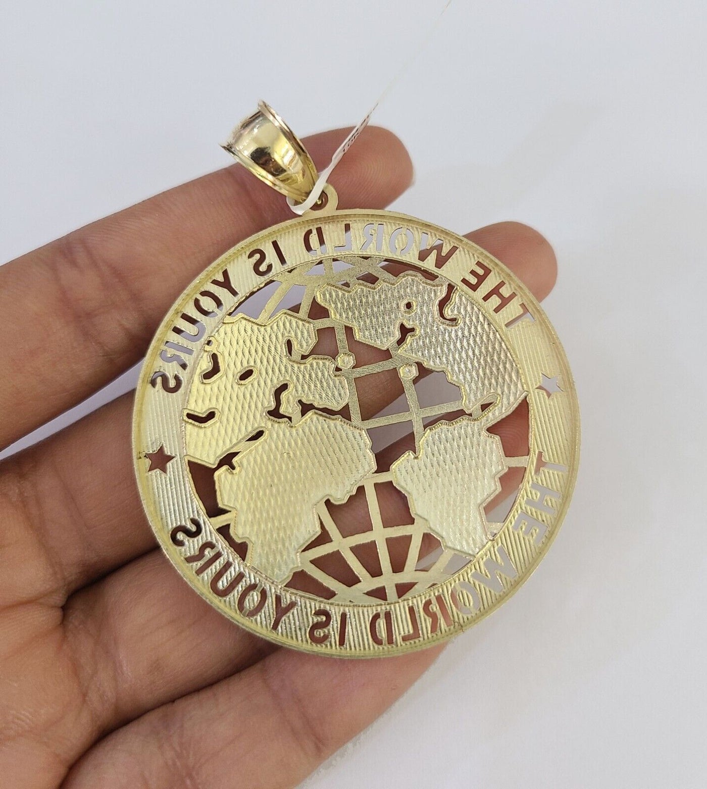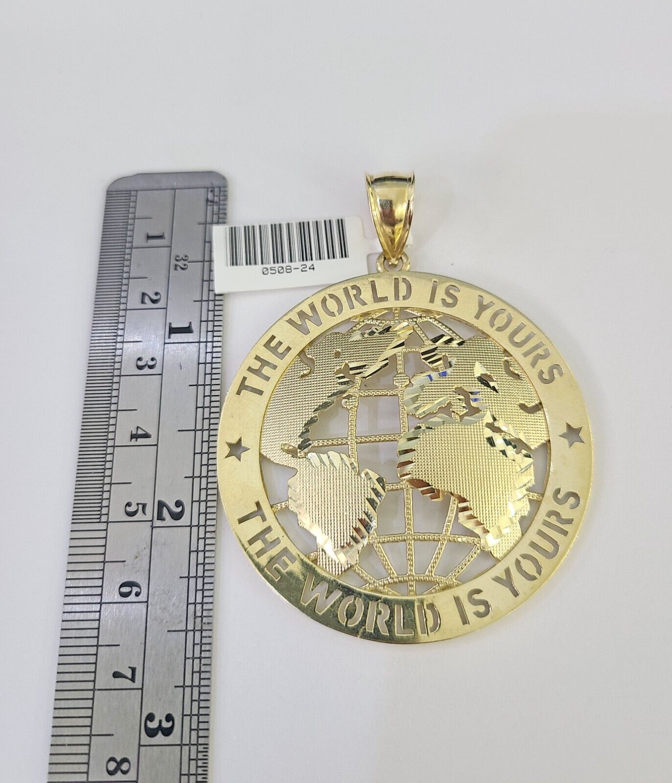 Is Presenting You with This Absolutely Stunning Real 10k Yellow Gold Rope Chain 7mm, 20 inch-30 inches, Lobster Lock with a 10k World is Yours Charm Pendant. These Beautiful chains and Pendant will not tarnish, discolor, or fade because they are Pure 10K Gold. We also have them in various another length and sizes. 26"-A20B7 A10B6
