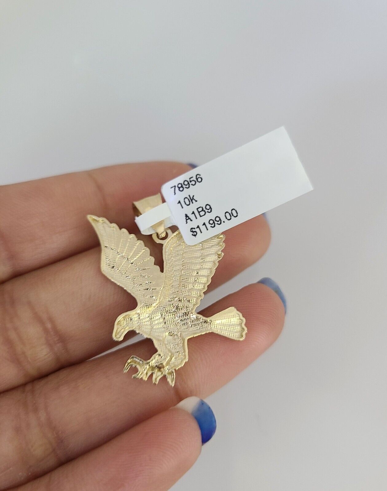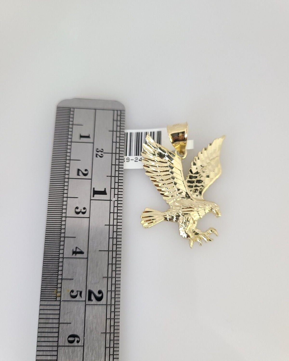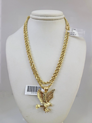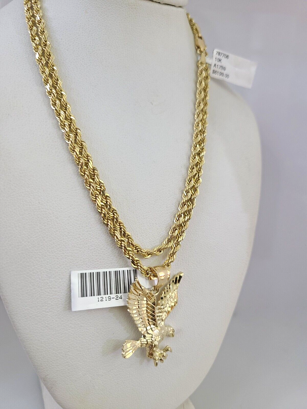 REAL 10k Solid Rope Chain Flying Eagle Charm Pendant 3mm Set 18"-26" in Necklace