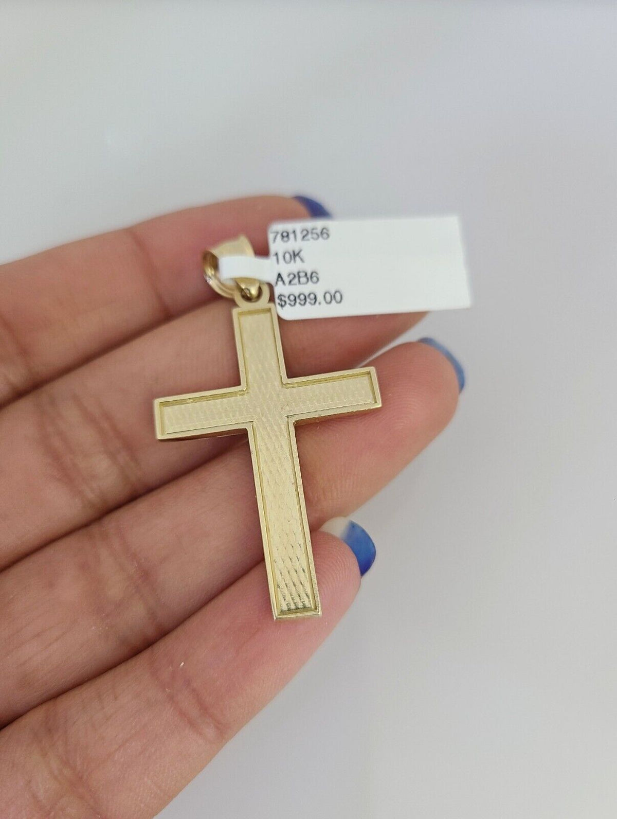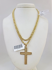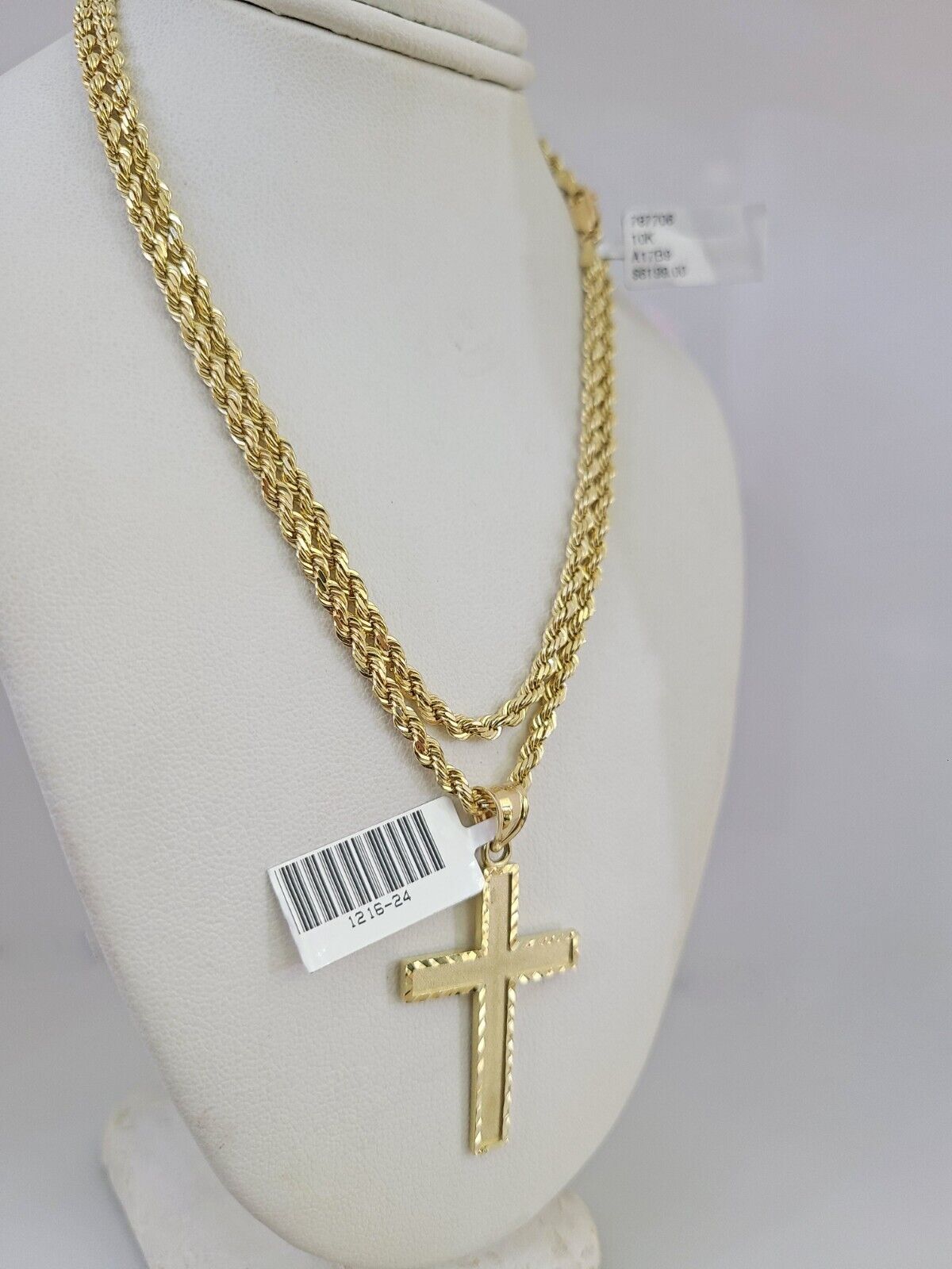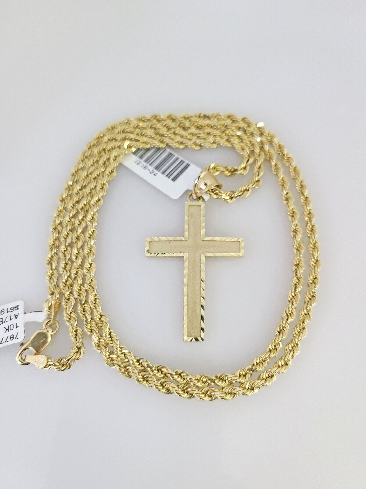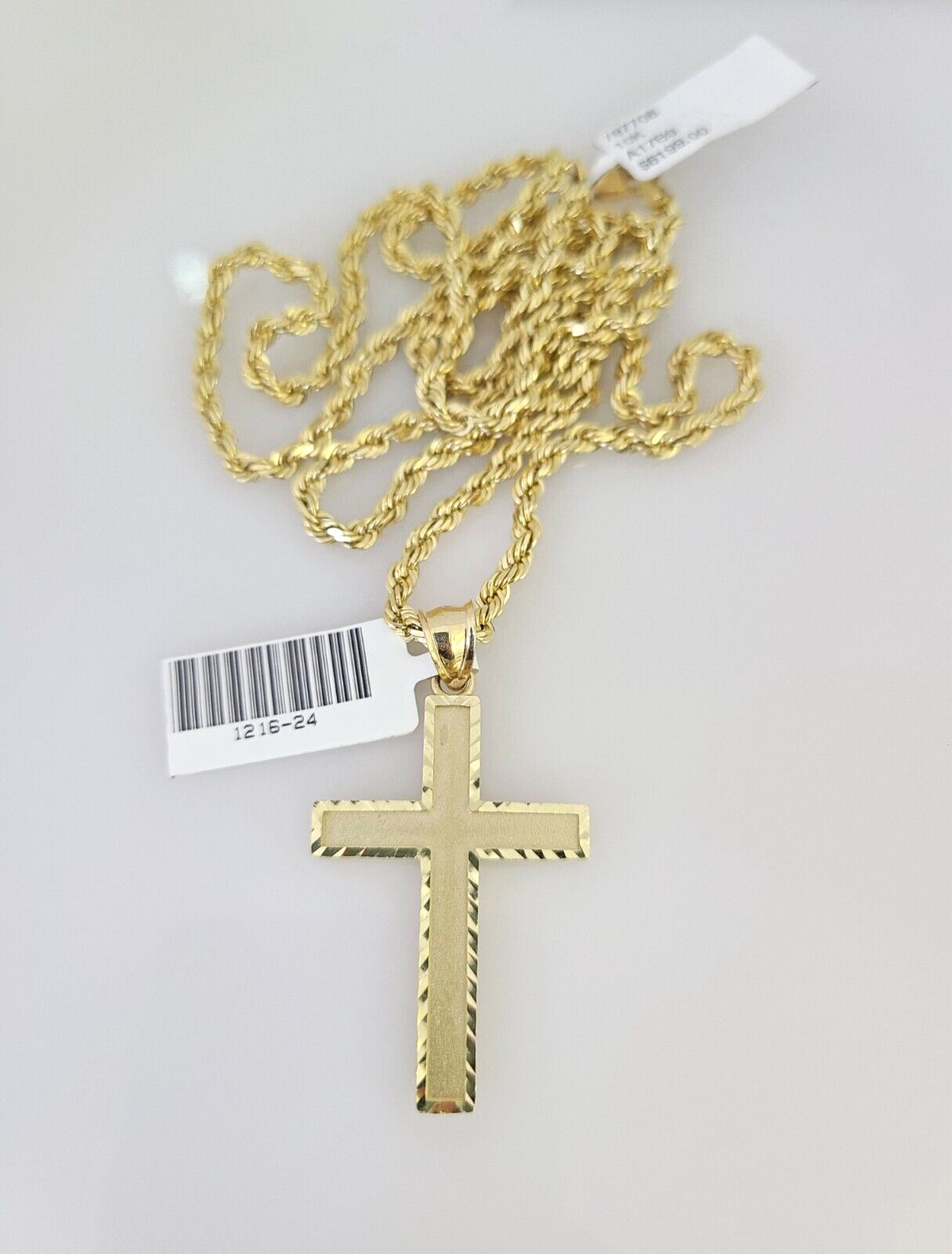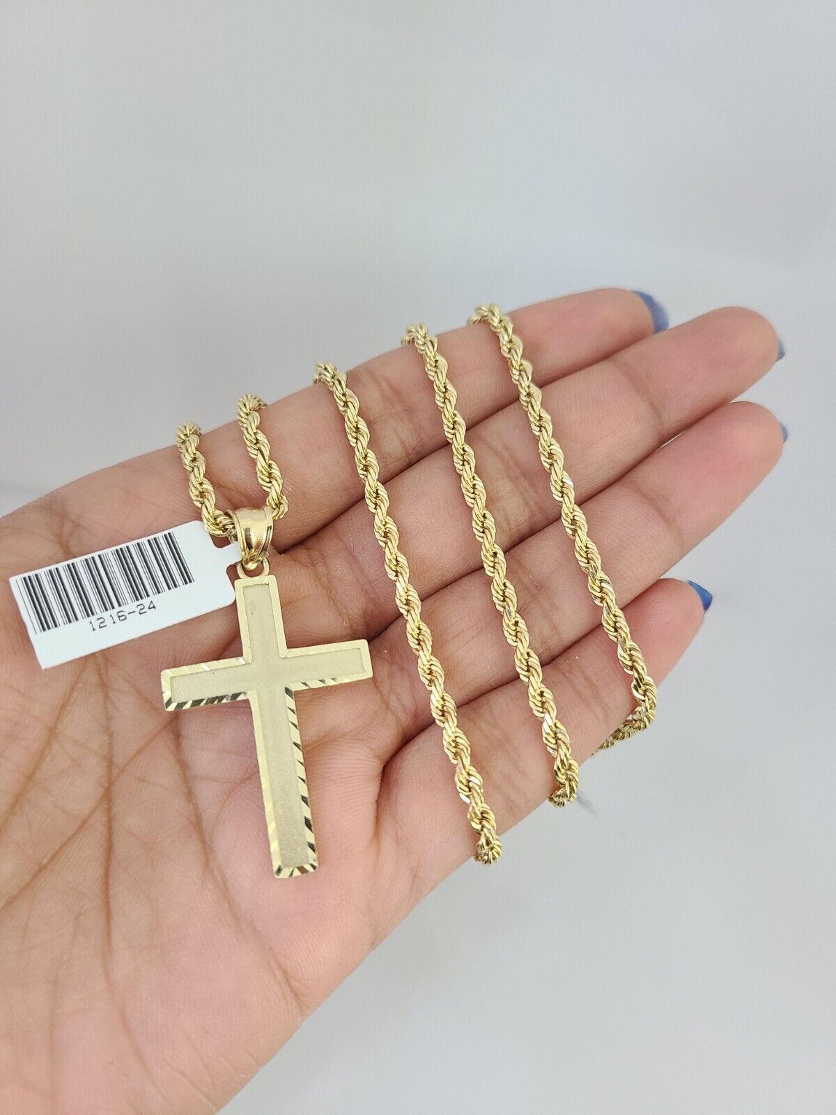 REAL 10k Solid Rope Chain Jesus Cross Charm Pendant 3mm Set 18"-26" in Necklace