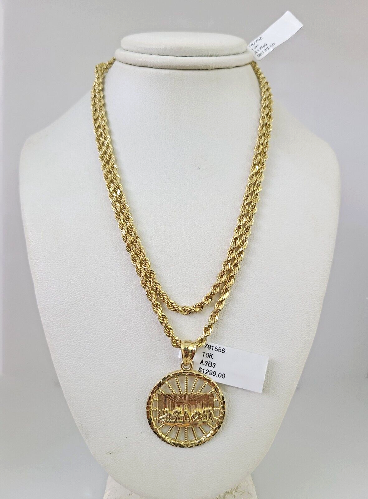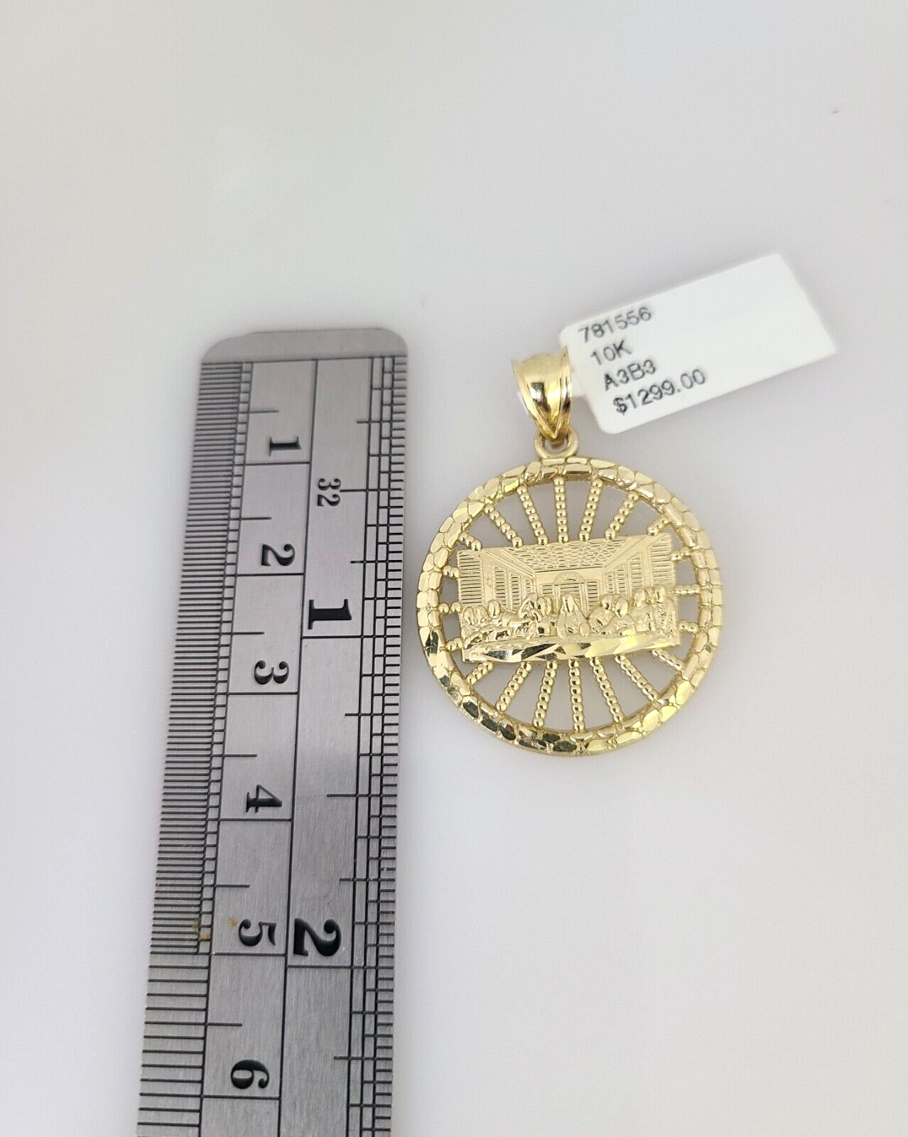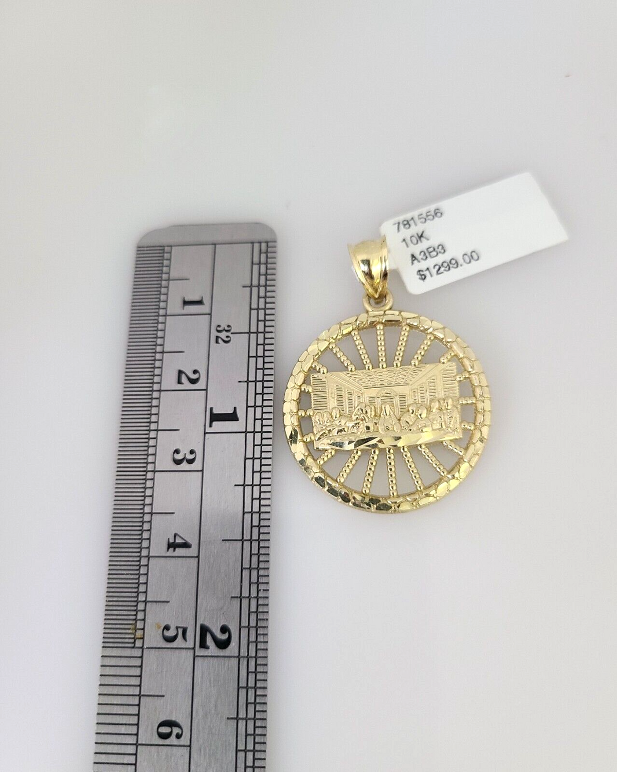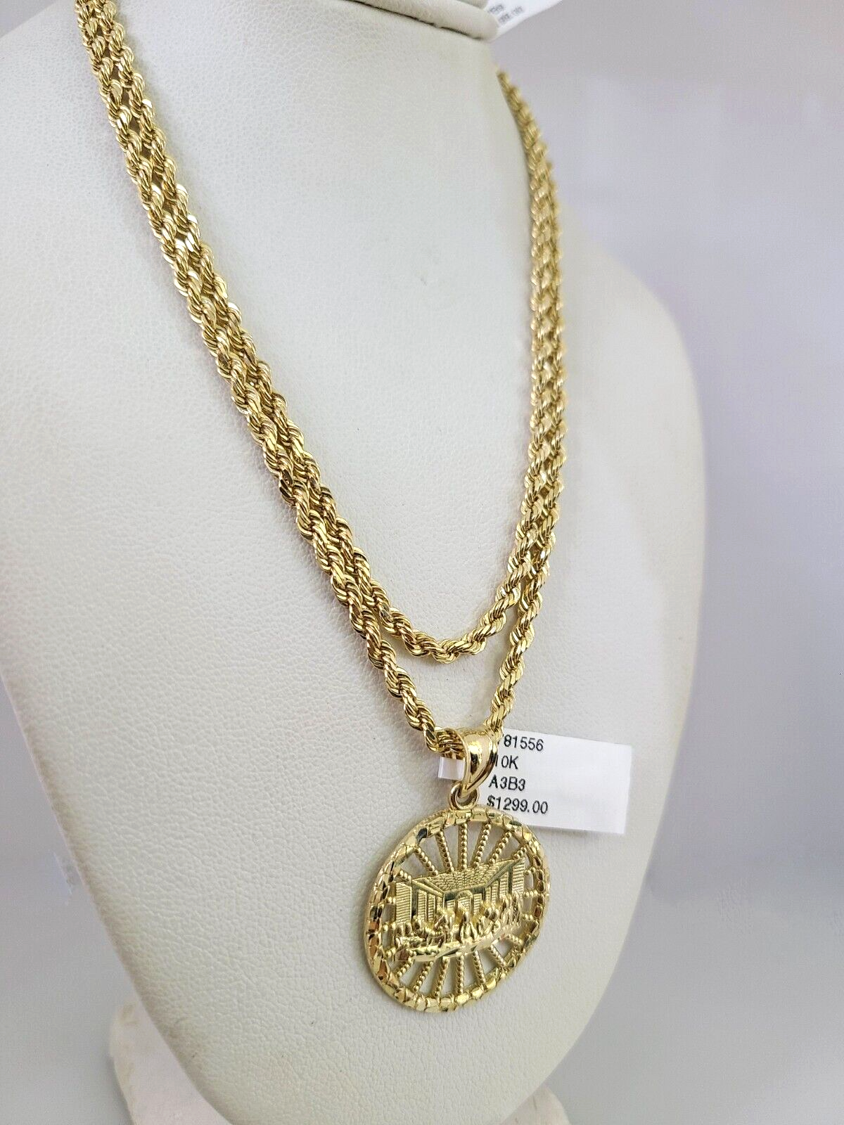 REAL 10k Rope Chain Last Supper Charm Pendant 3mm Necklace Set 18"-26"