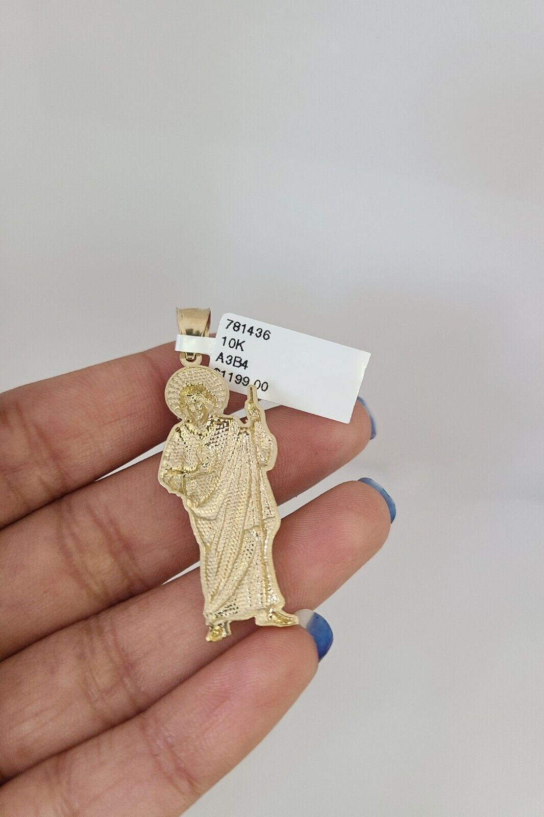 REAL 10k Solid Rope Chain Saint Jude Charm Pendant 3mm Set 18"-26" in Necklace