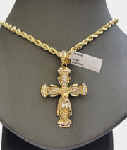 Genuine 10 k Yellow Gold Rope Necklace 5mm Chain Diamond cuts With Jesus Crucifix Cross. The Various length of the Chain are 20" with Jesus Crucifix Cross 2 inch(approx.). The pendants are unique in design and considered durable too. If you are not happy with the way it looks or feels, we do offer 30 - Days FREE Return shipping. Contact us for more information.