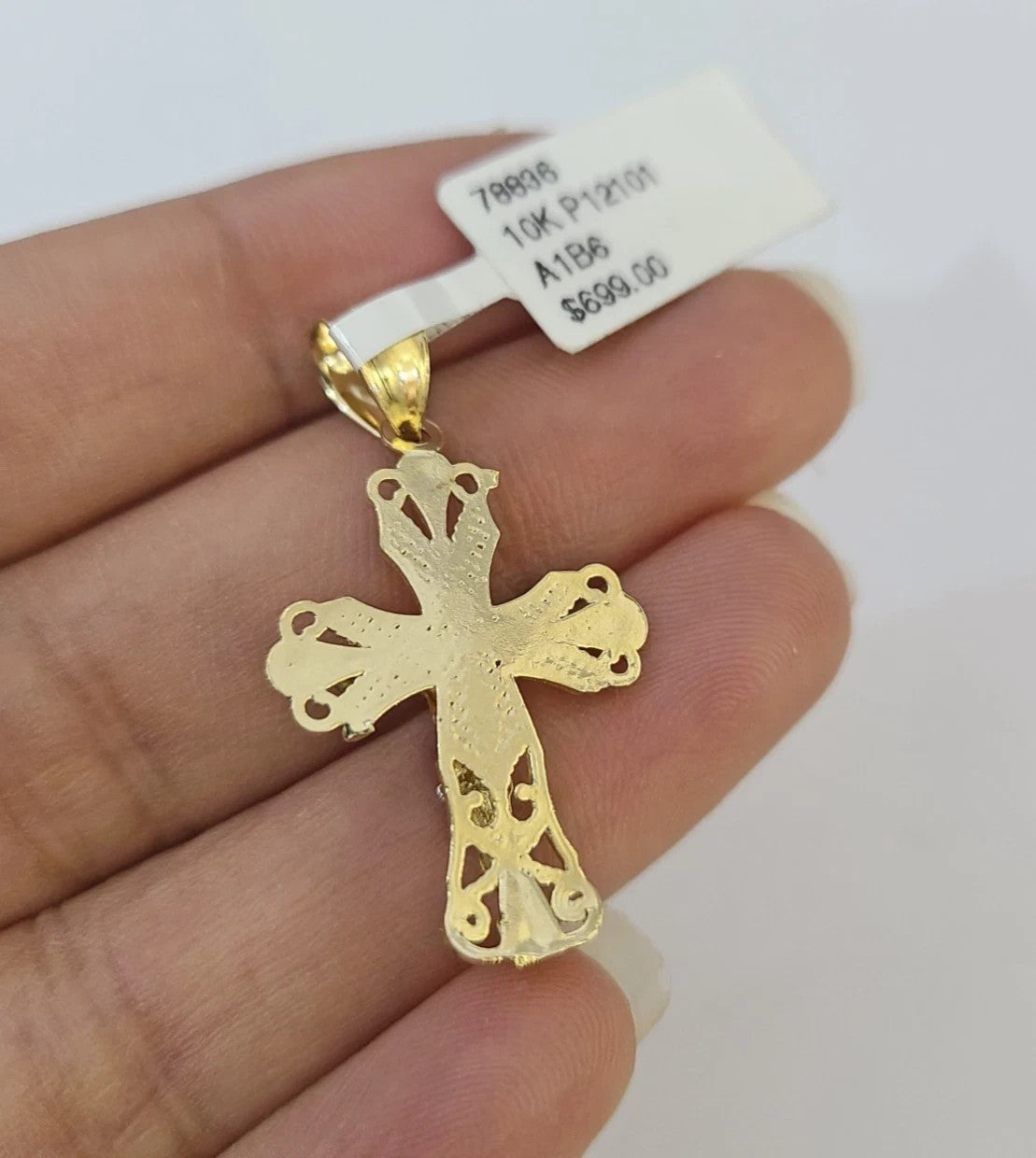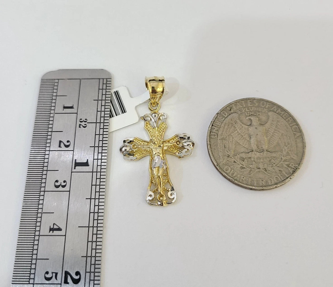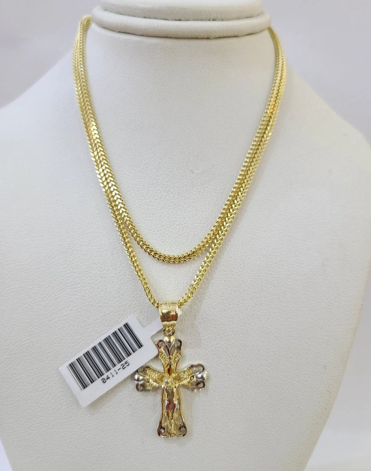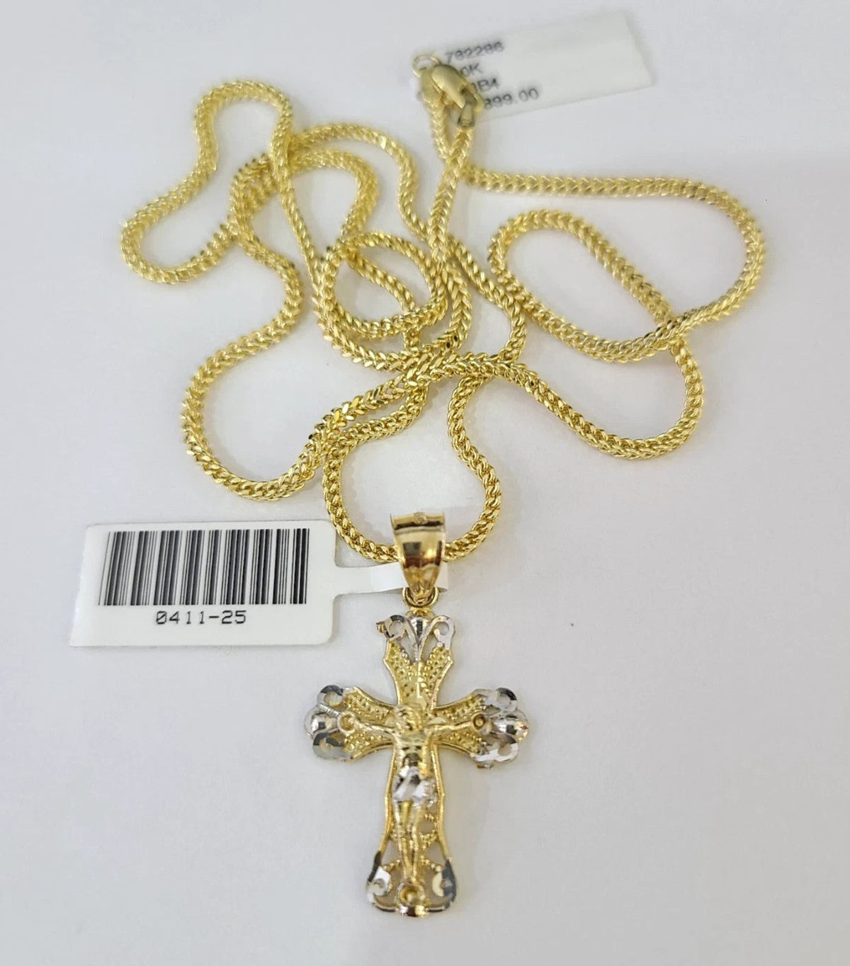 Is Presenting You with This Absolutely Stunning Real 10k Yellow Gold Franco Chain 2mm, 16"-28" with Jesus Cross Charm, Lobster Lock. The links are 10K GOLD and are very strong. These Beautiful Chains will not tarnish, discolor, or fade because they are Pure 10K Gold. We also have them in various another length. Please feel free to contact us if you have any queries regarding the item.