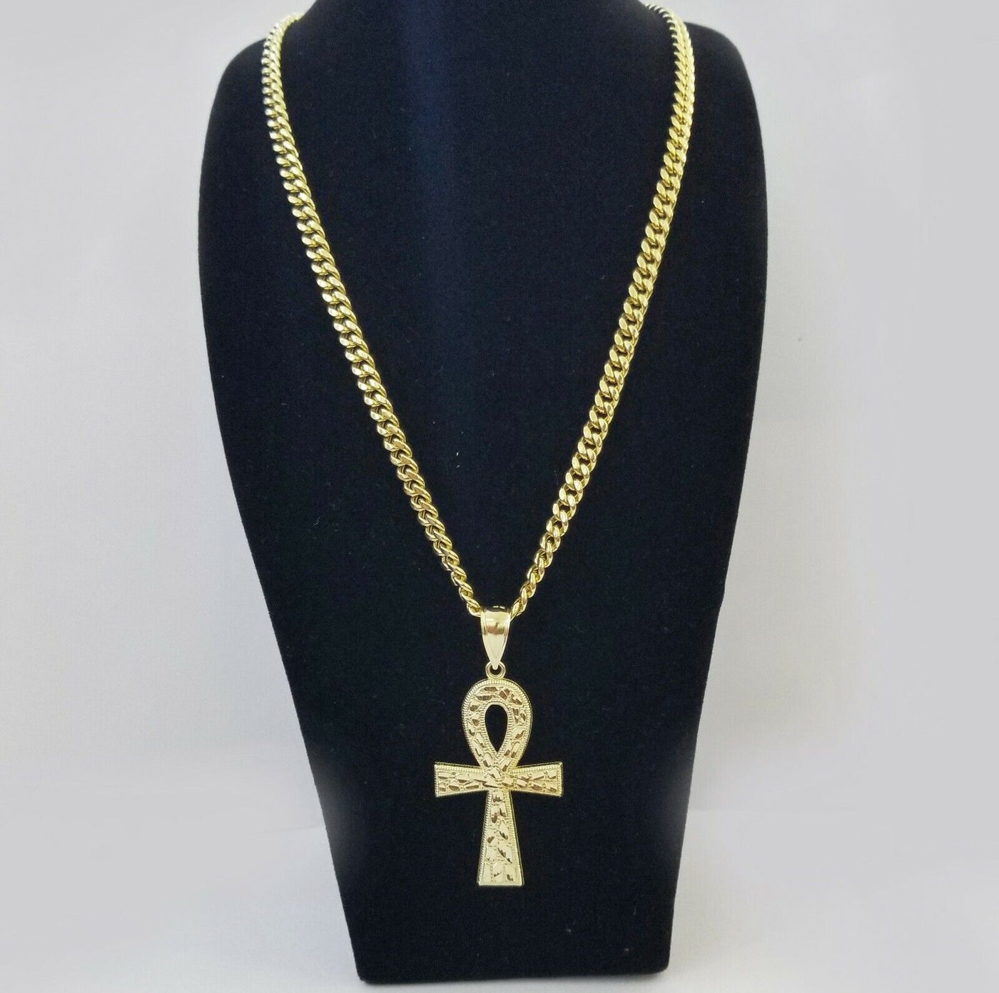 Is Presenting You with This Absolutely Stunning Real 10k Yellow Gold Miami Cuban CHAIN 6mm, 20 Inches, Box Lock with a NUGGET style JESUS CROSS Pendant.�� The links of chain are very strong and have a box lock with the two safety clasp on sides.��These Beautiful CHAINS and PENDANTS will not tarnish, discolor, or fade because they are Pure 10K Gold.
