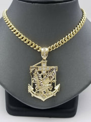 ��We present You with This Absolutely Stunning Real 10k Yellow Gold Miami Cuban Chain with American Eagle Anchor Charm. It has a detailed cut with a very good finish.��These Beautiful Chain and Pendant will not tarnish, discolor, or fade because they are Pure 10K Gold. Please feel free to contact us if you have any queries regarding the item.��