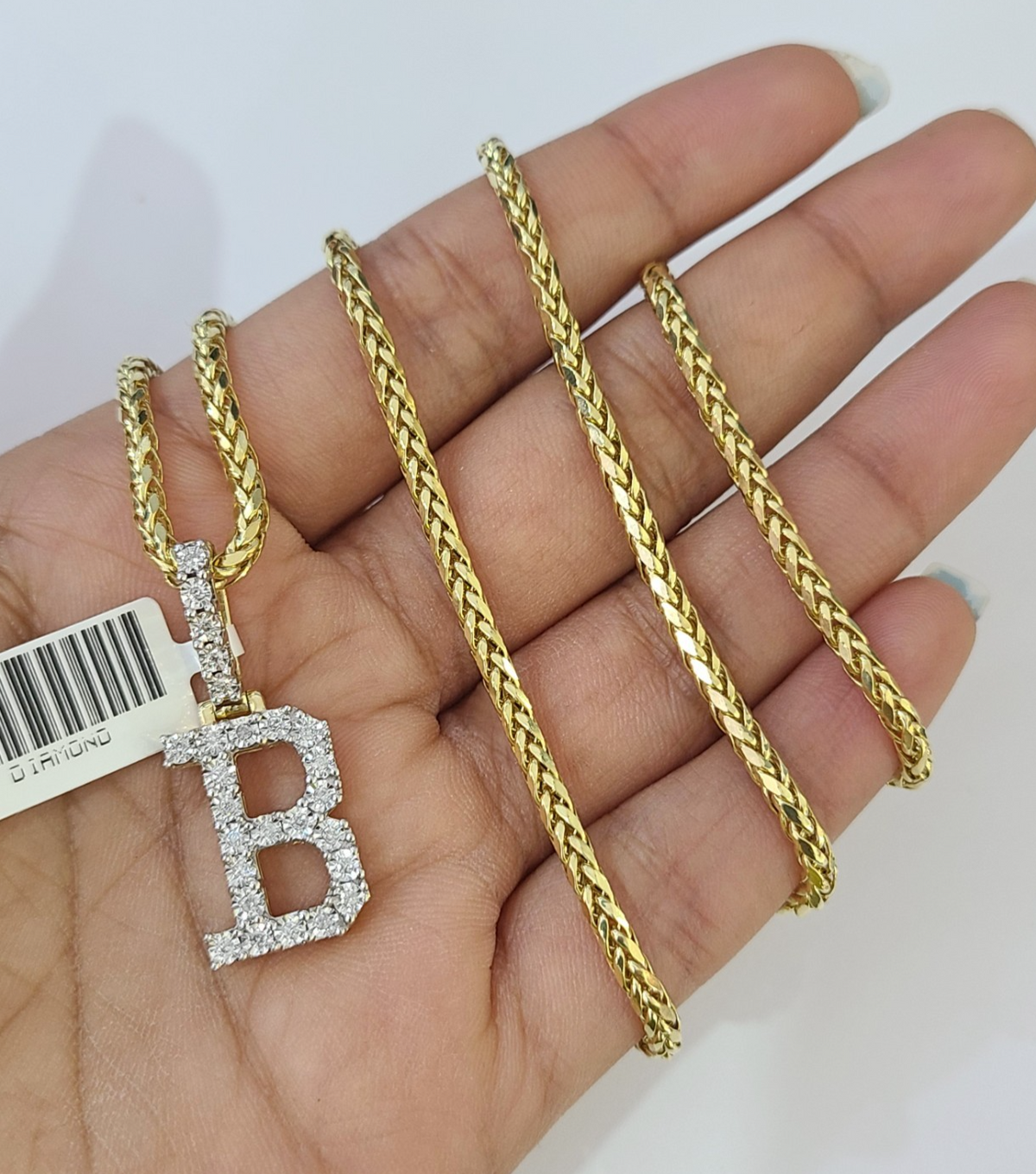Is Presenting You with This Absolutely Stunning Real 10k Yellow Gold Palm Chain 3mm, 20"-30" with B Diamond Initial Charm, Lobster Lock. The links are 10K GOLD and are very strong. Please feel free to contact us if you have any queries regarding the item.