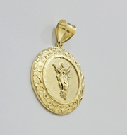 Real 10kt Jesus Circle Charm Pendant 10k Yellow Gold Chain Necklace 1.5 Inch NEW