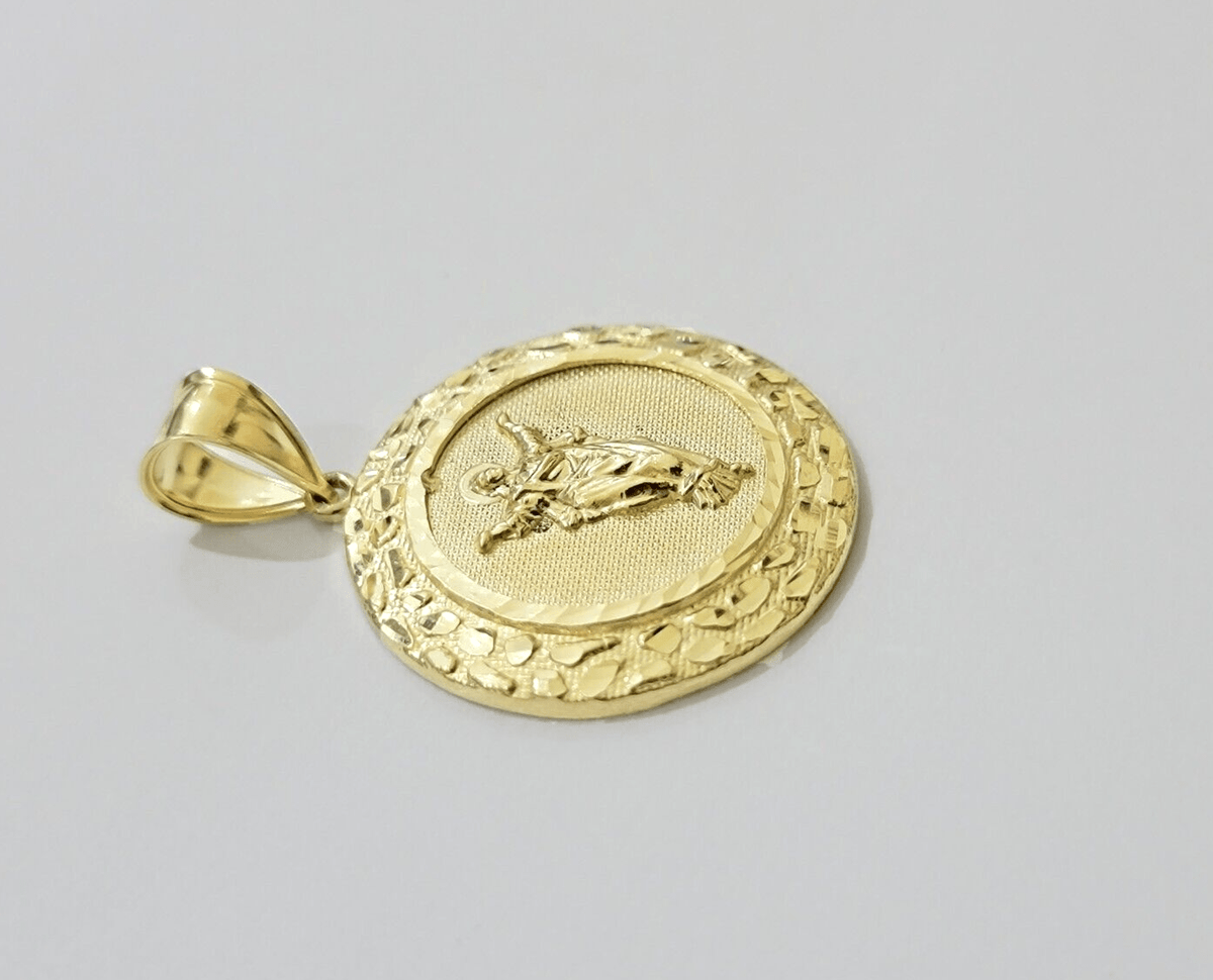 10 K Yellow Gold Real (Not plated , Not filled ) Circular Jesus Charm Pendant For Men and Women. The Length of the Pendant is 1.5 inches (approx. ) Long. The pendant can be worn with any chain. The pendant is considered durable. If you are not happy with the way it looks or feels, we do offer 30 - Days FREE Return shipping..