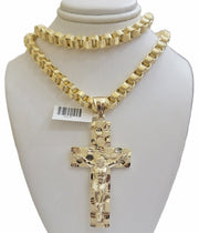 Genuine 10 k Yellow Gold Byzantine Necklace 6mm Chain With Nugget Jesus Crucifix Cross. The Various length of the Chain are 22"-30" with Nugget Jesus Crucifix Cross 3 inches and no stone. The pendants are unique in design and considered durable too. If you are not happy with the way it looks or feels, we do offer 30 - Days FREE Return shipping. Contact us for more information.