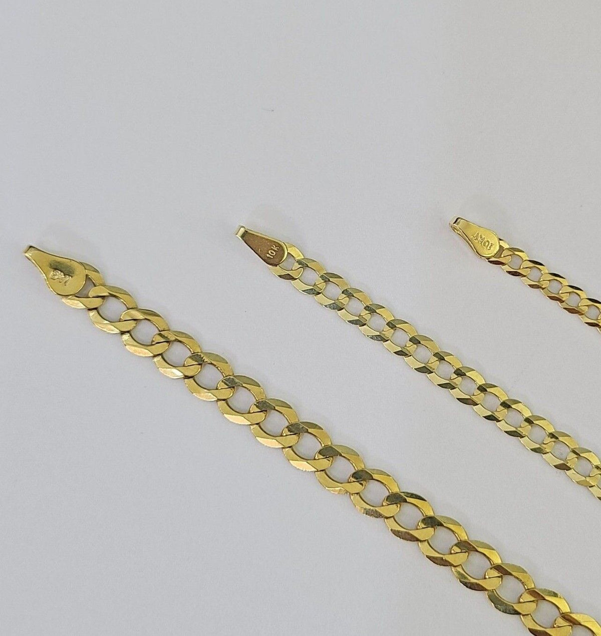 Is Presenting You with This Absolutely Stunning Real 10k Yellow Gold Cuban Curb Chain 3mm 4mm 5mm in width and, 18-28 Inches in length, lobster clasp. These Beautiful Chains will not tarnish, discolor, or fade because they are Pure 10K Gold.