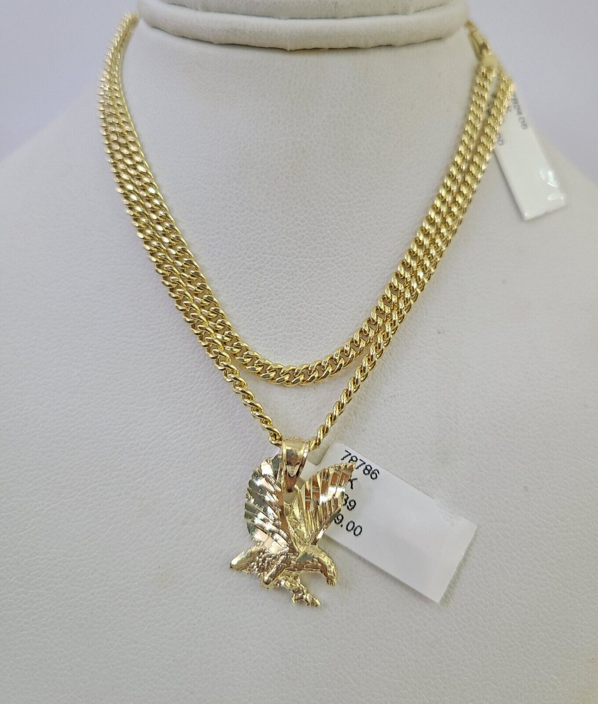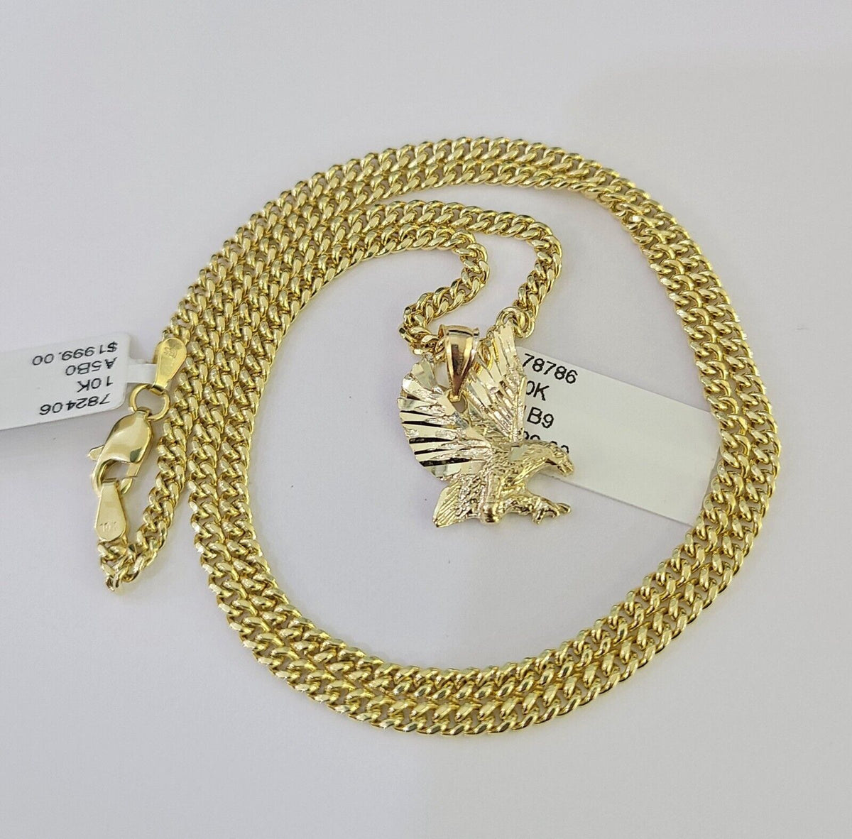 Is Presenting You with This Absolutely Stunning Real 10k Yellow Gold Miami Cuban Chain 3mm, 18"-28" with Flying Eagle, Lobster Lock. The links are 10K GOLD and are very strong. These Beautiful Chains will not tarnish, discolor, or fade because they are Pure 10K Gold. We also have them in various another length. Please feel free to contact us if you have any queries regarding the item. 20"-A5B0 A1B9