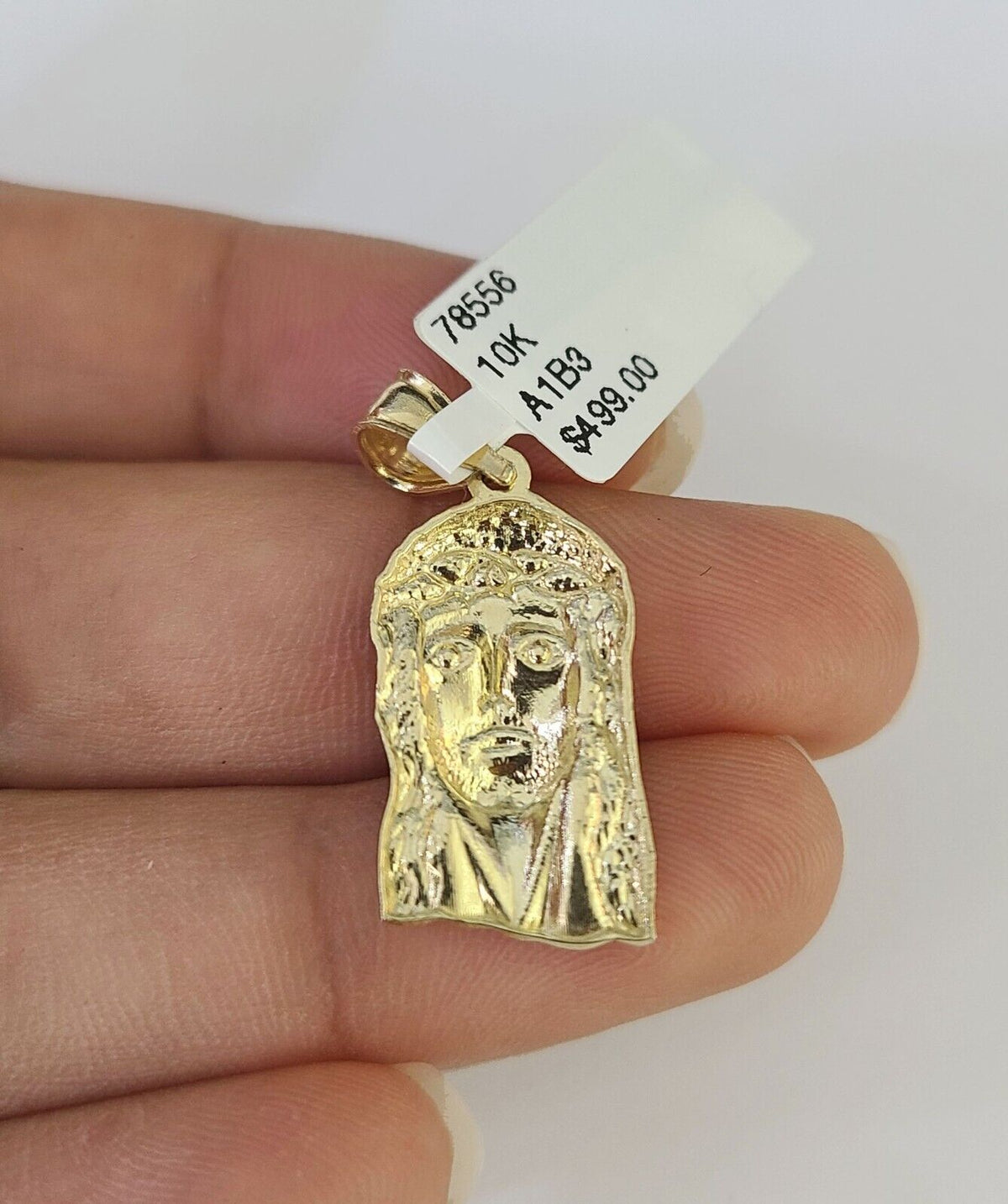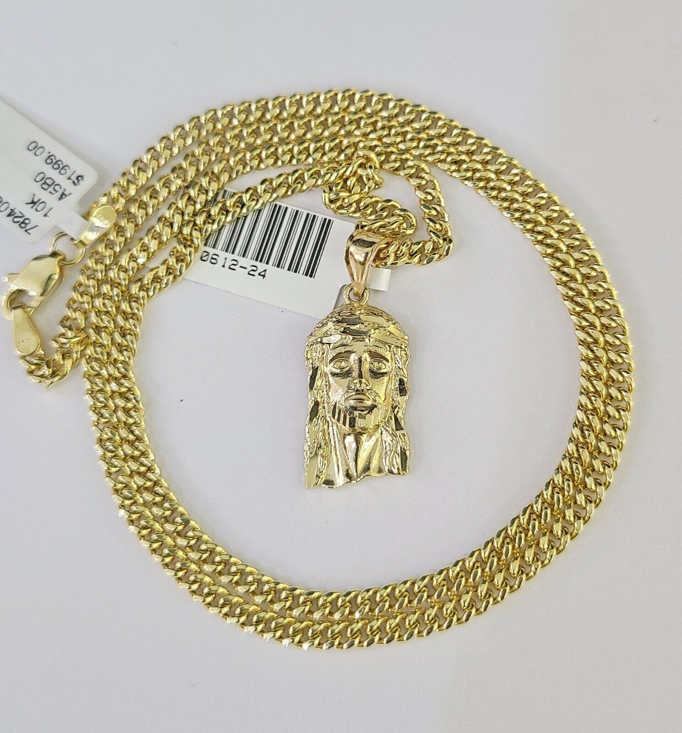 10K Gold Miami Cuban Chain Jesus Head 18"-28" 3mm REAL Pendant Necklace SET