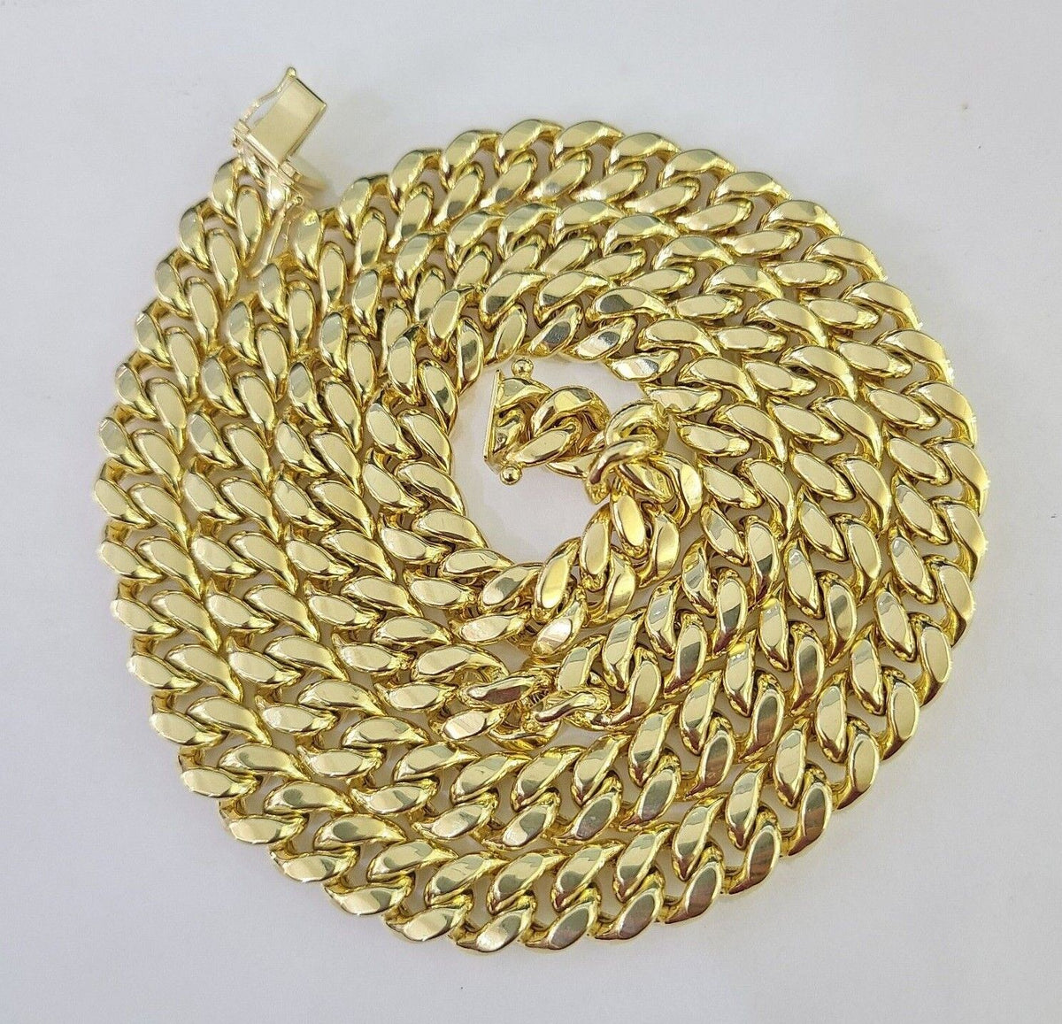 Is Presenting You with This Absolutely Stunning Real 10k Yellow Gold Miami Cuban Chain 3mm-10mm in width and, 20-30 Inches in length, Box Lock/ lobster clasp. These Beautiful Chains will not tarnish, discolor, or fade because they are Pure 10K Gold.