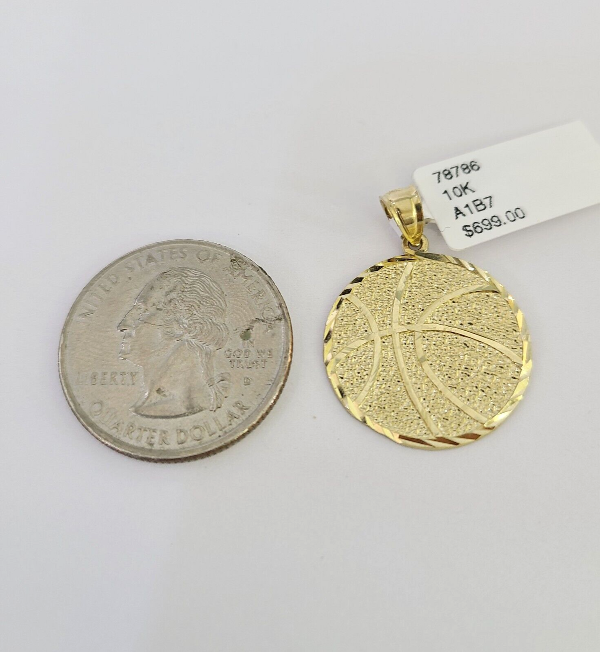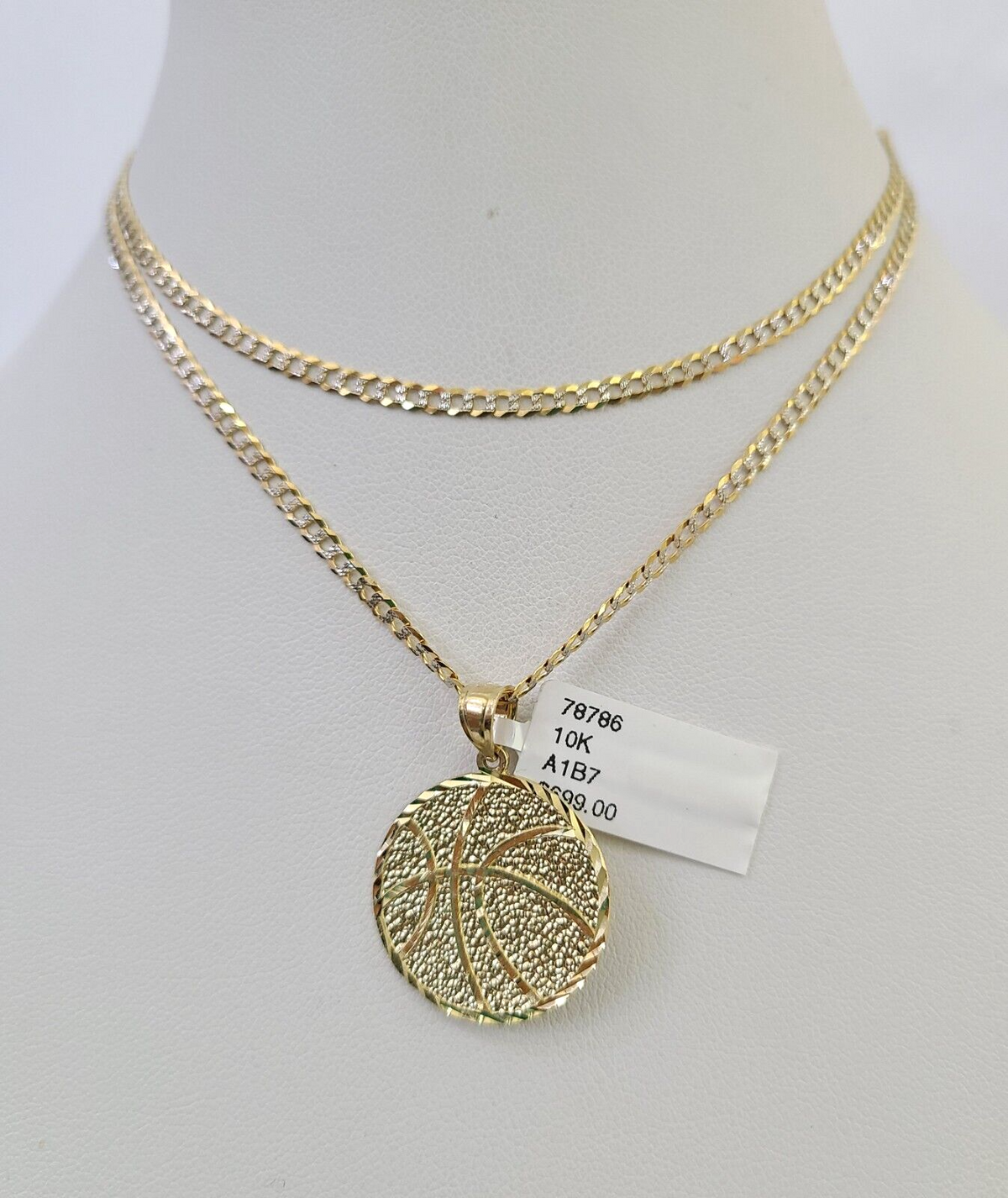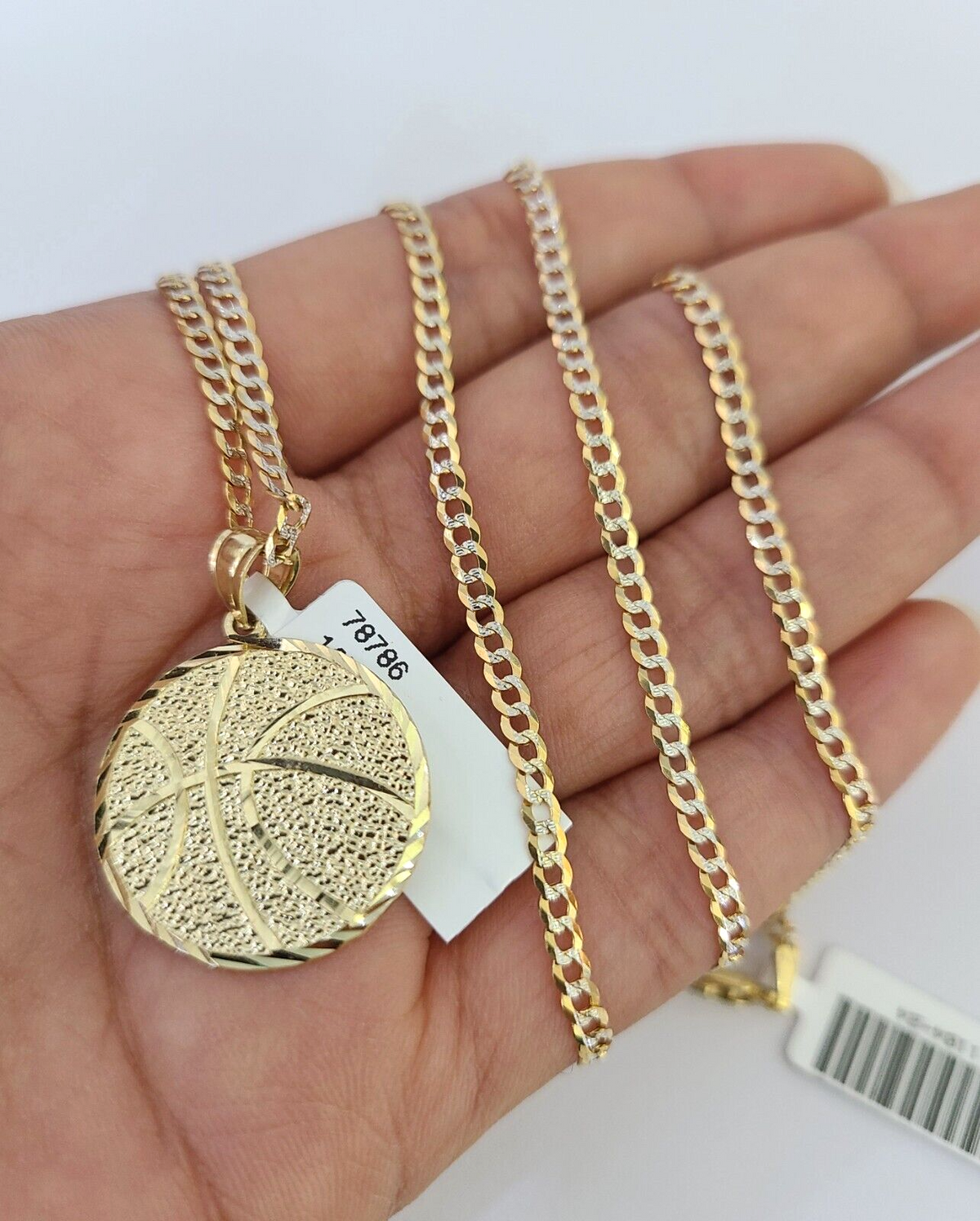 10k Solid Gold Cuban Curb Chain Basket Ball Pendant 2mm 18"-24" SET Necklace - 20" Chain with Charm