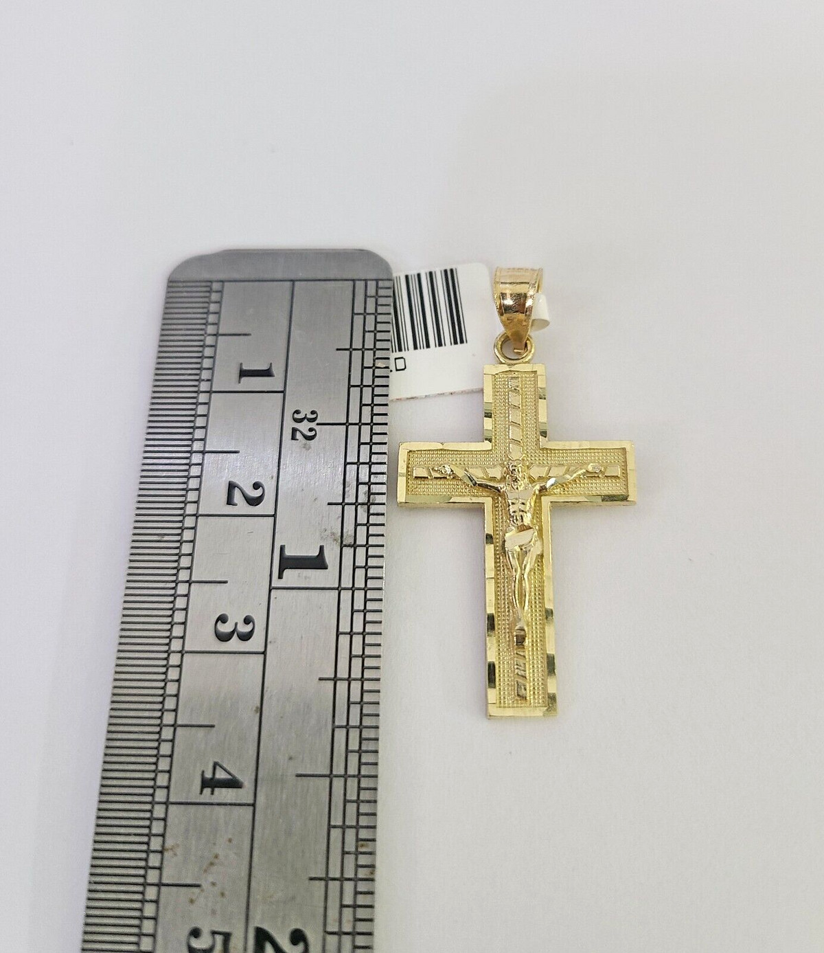 10k Solid Gold Cuban Curb Chain Jesus Cross Pendant 2mm 18"-24" SET Necklace