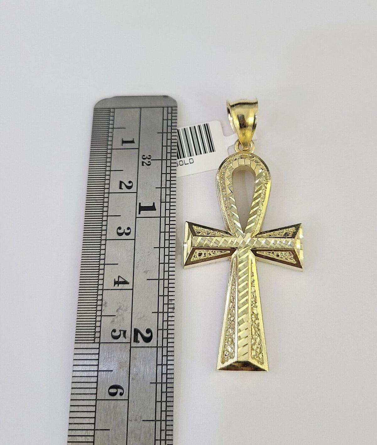 We present You with This Absolutely Stunning Real 10k Yellow Gold SOLID Cuban Curb link Chain Diamond Cuts with Jesus Cross Charm. It has a detailed cut with a very good finish. These Beautiful Chains will not tarnish, discolor, or fade because they are Pure 10K Gold. Please feel free to contact us if you have any queries regarding the item. 24"-A17B8 A5B0