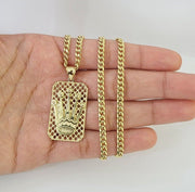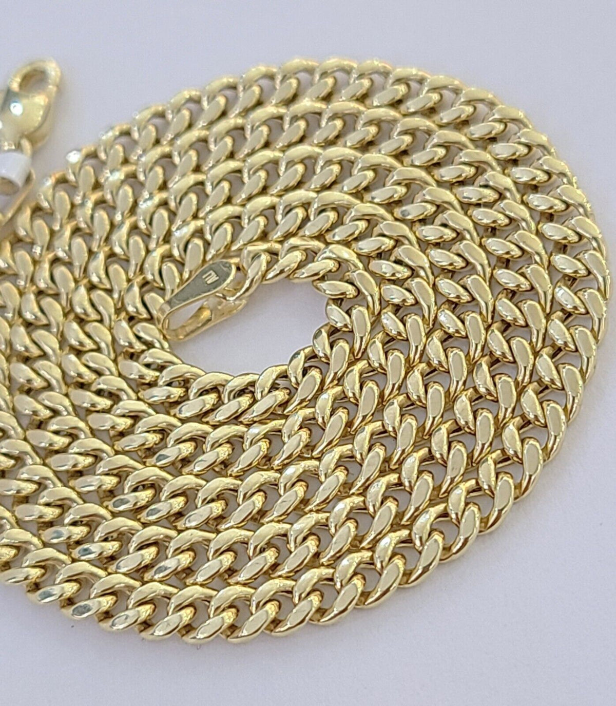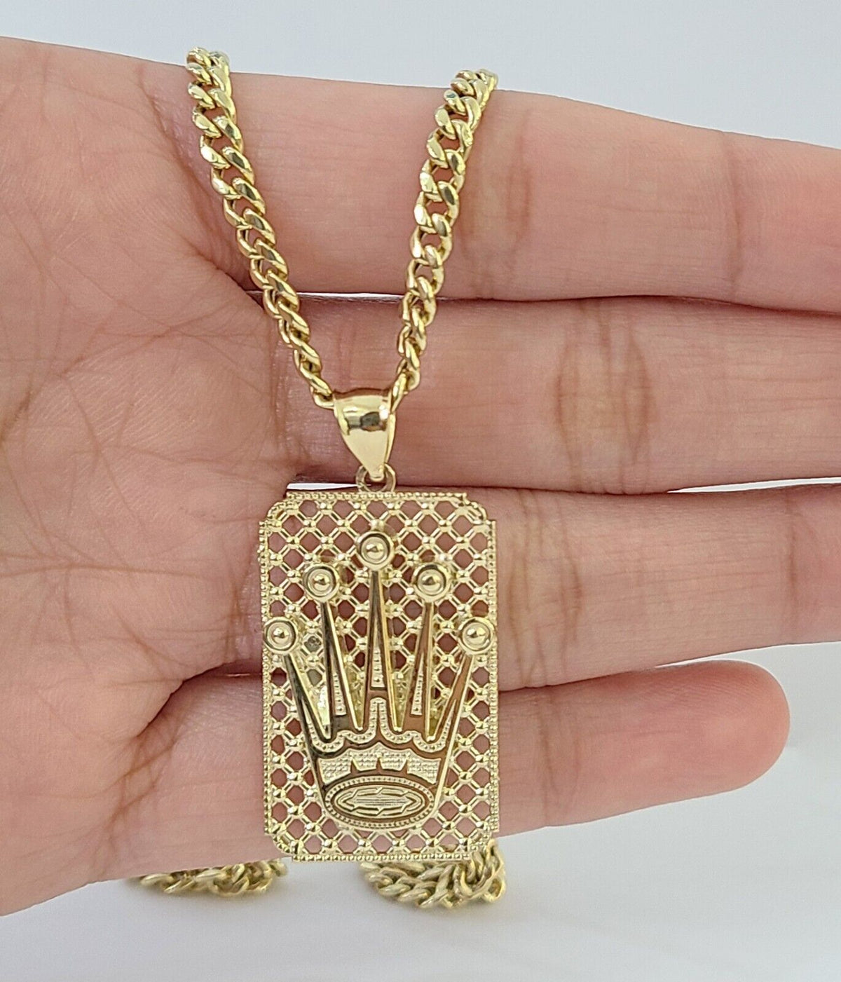10K Yellow Gold Crown Pendent 4mm 18" 20" 22"24"26" Inch Miami Cuban Chain