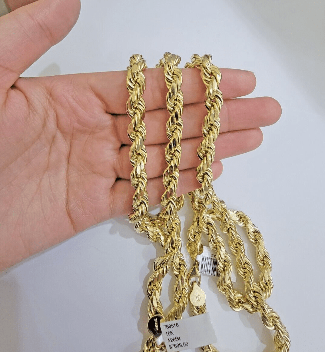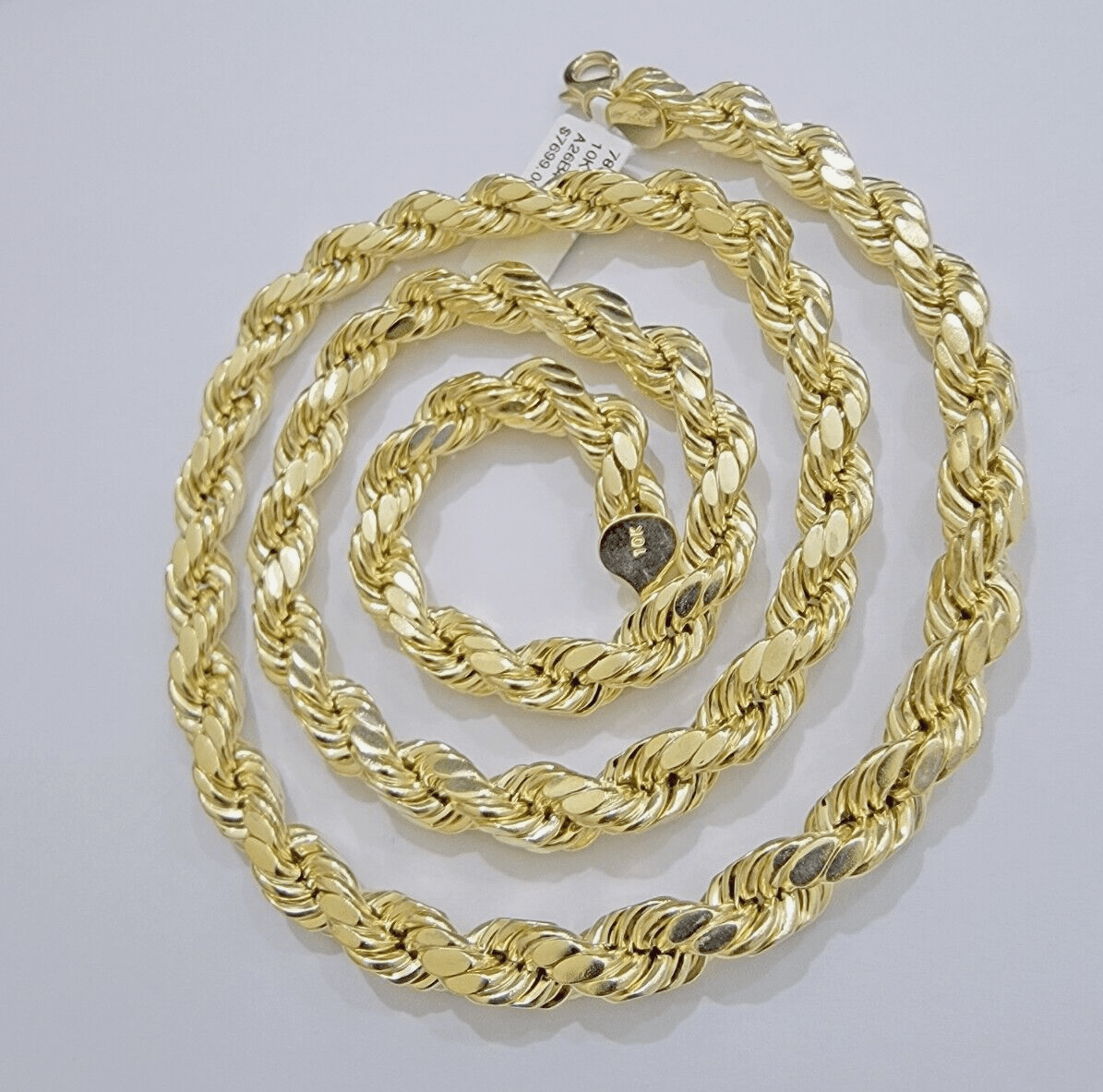 10k Yellow Gold Rope Chain Necklace 22 Inch 8mm Diamond Cuts Men's REAL 10KT