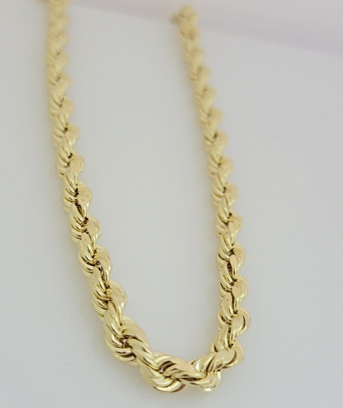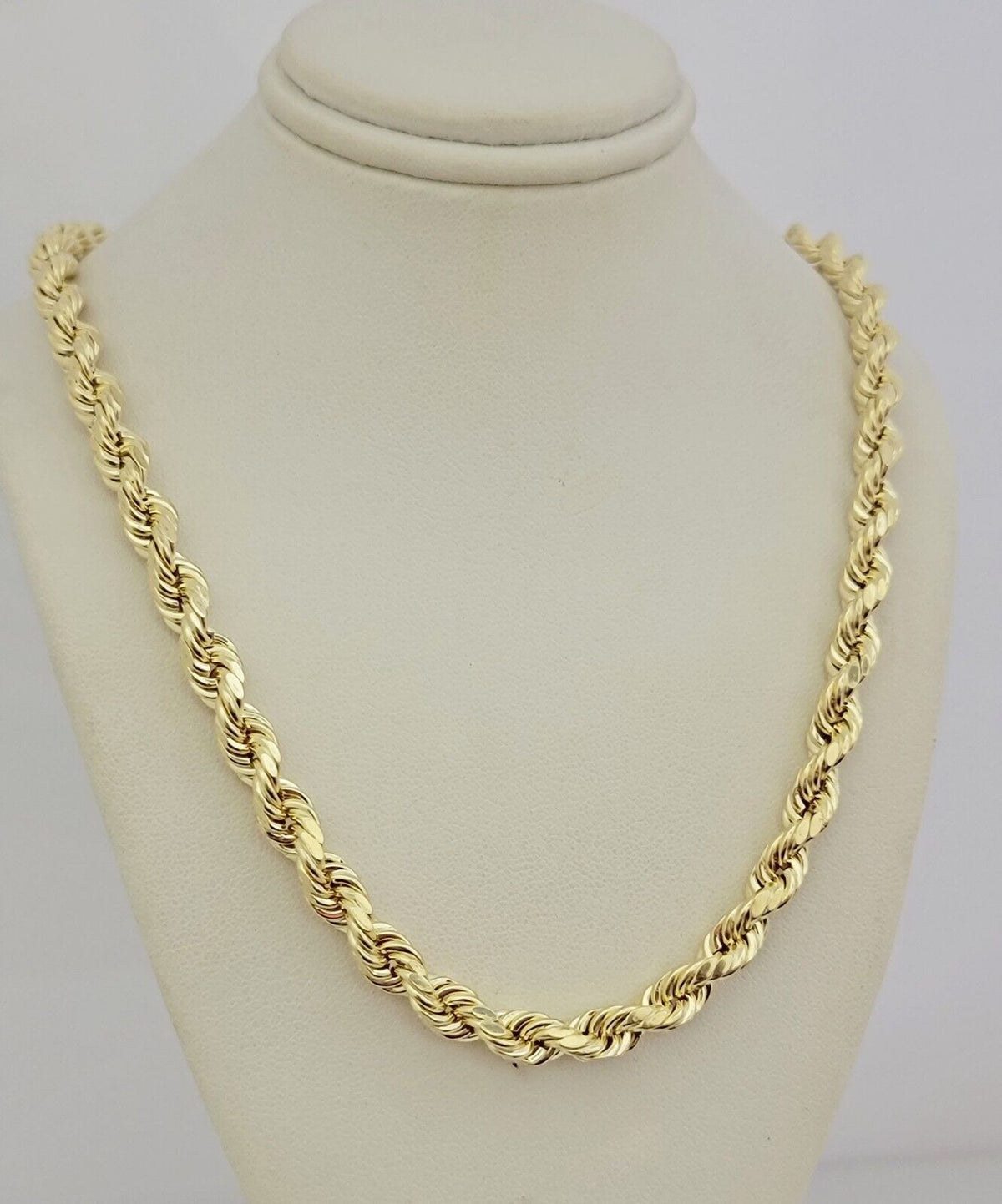 10K Yellow Gold Rope Chain Necklace 7mm 24 Inch REAL 10kt Diamond Cuts For Mens