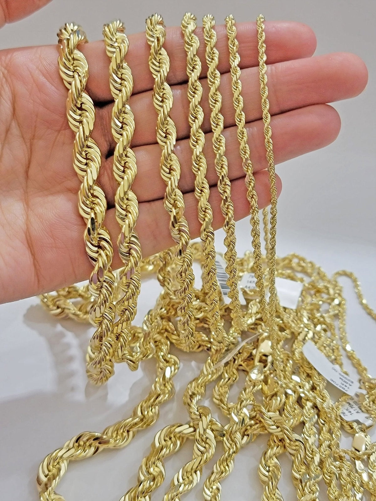 Solid (heavy ) Real 10 k Yellow Gold Rope Men's chain Necklace diamond cuts. The Width of the necklace is 6mm (approx.) and Length��18 Inches. The Clasp is lobster. The chain can be worn with the pendants and it is very steady�� . If you are not happy with the way it looks or feels, we do offer FREE��Return shipping. Contact us for more information.��