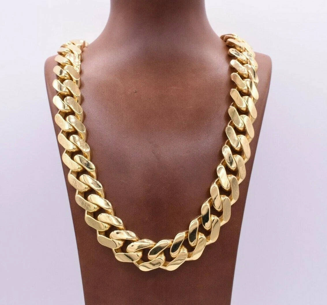 20mm Men's Miami Cuban Royal Link Chain Necklace Box Clasp Real 10K Yellow Gold