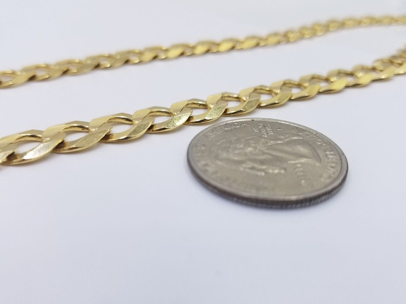 Real 10k Gold Chain Cuban Curb Link 18 Inch 10mm Solid 10kt Yellow Gold Necklace