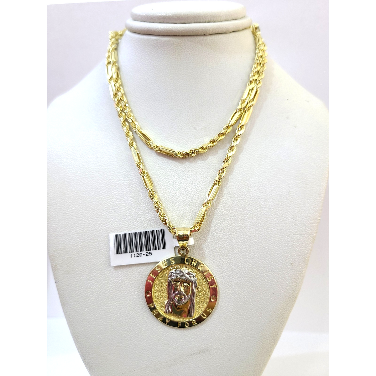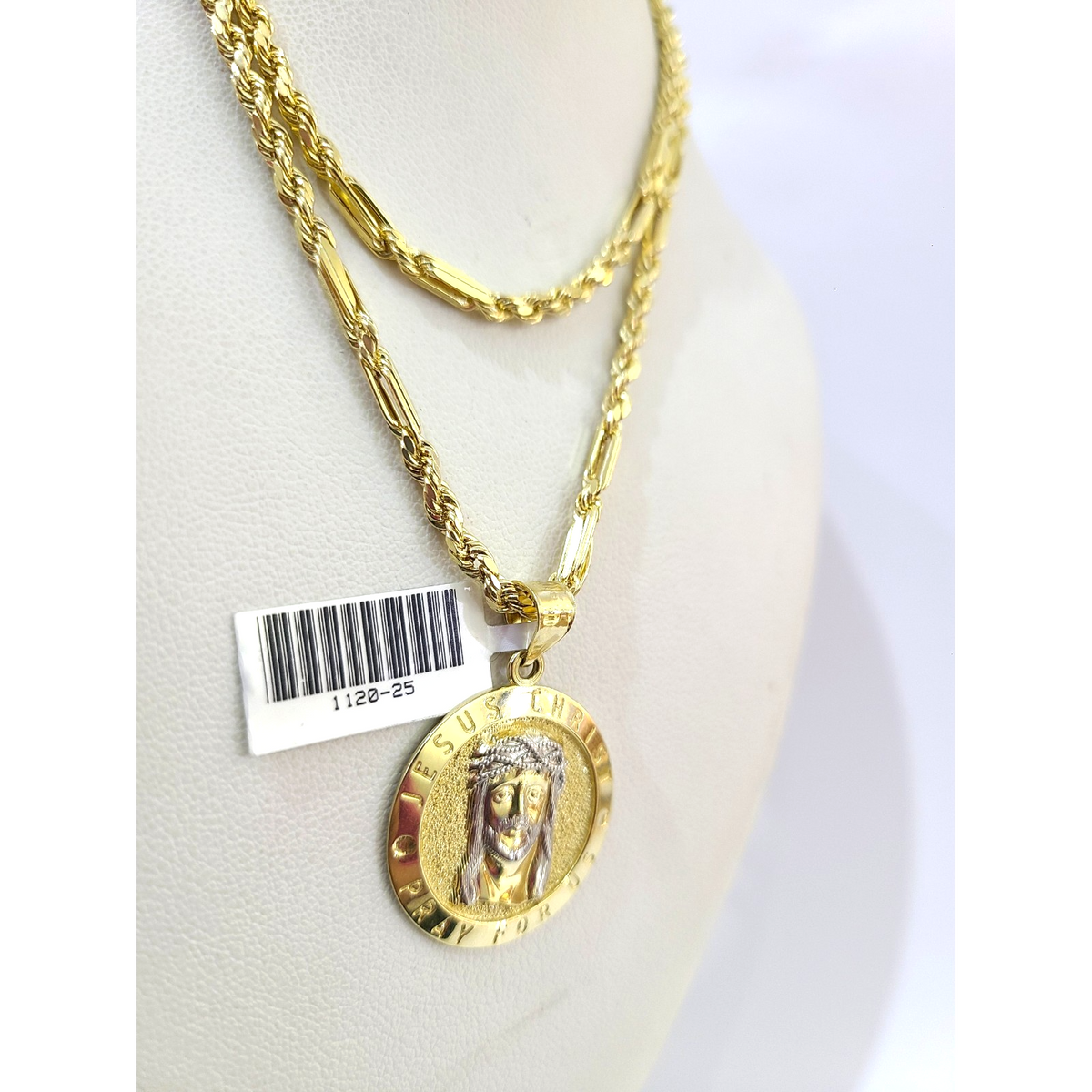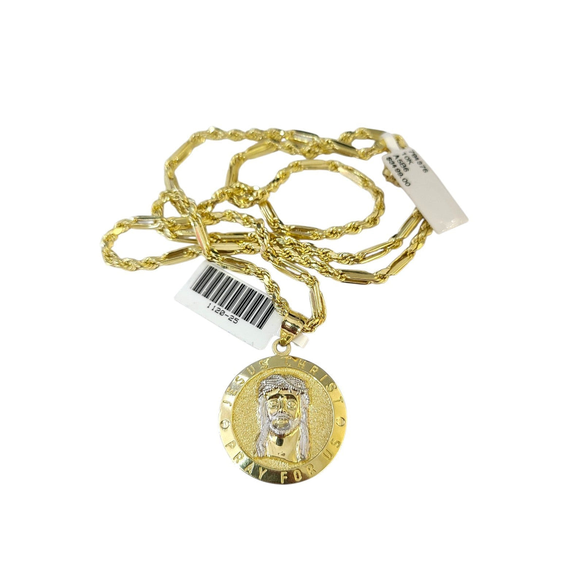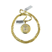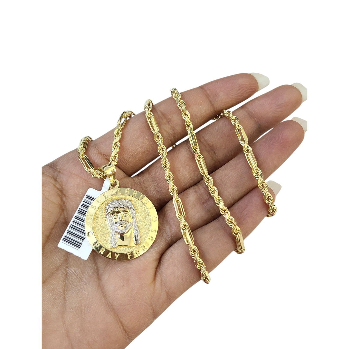 Is Presenting You with This Absolutely Stunning Real 10k Yellow Gold Palm Chain 3mm, 18"-28" with Jesus Christ Pray for Us Charm, Lobster Lock. The links are 10K GOLD and are very strong. Please feel free to contact us if you have any queries regarding the item.