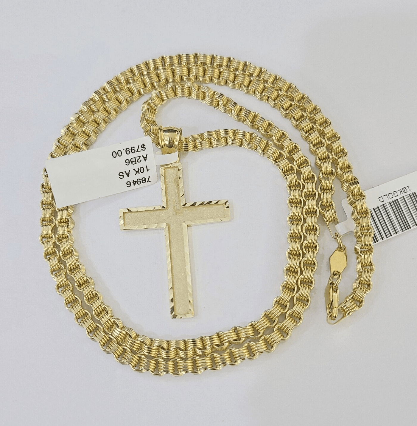 Is Presenting You with This Absolutely Stunning Real 10k Gold Byzantine Necklace 3mm 20" with Jesus Crucifix cross pendant SET.��These Beautiful chains and Pendants will not tarnish, discolor, or fade because they are Pure 10K Gold.��We also have them in various another length. Please feel free to contact us if you have any queries regarding the item.��