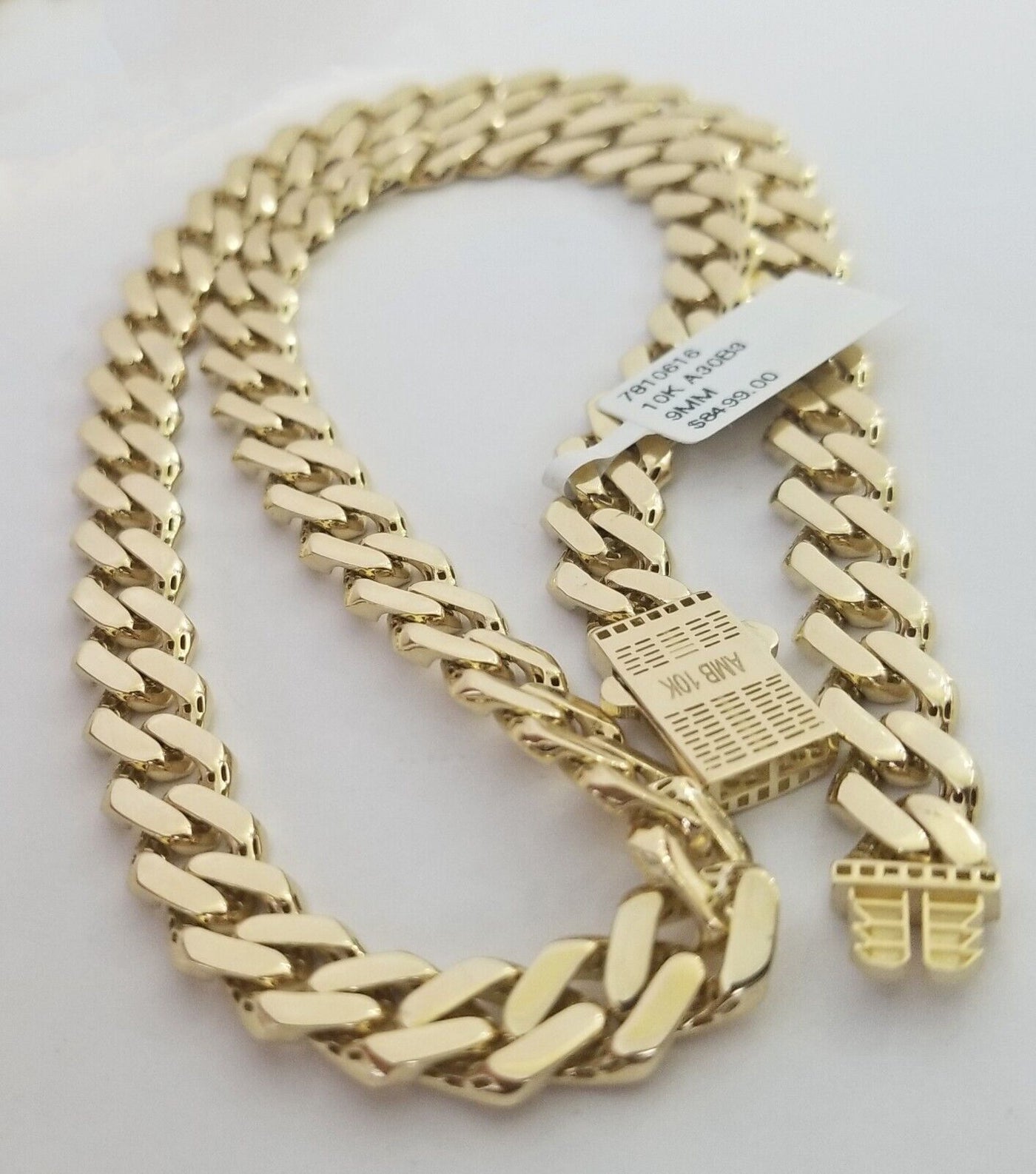 Real 10k Gold Royal Miami Cuban Monaco Link Chain 9mm 20" yellow gold necklace