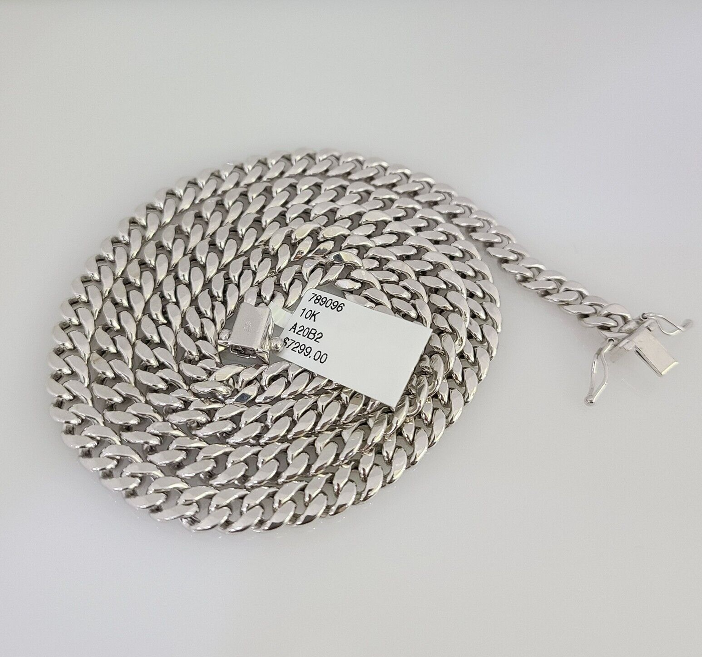 Is Presenting You with This Absolutely Stunning Real 10k White Gold Miami Cuban Chain 5mm, 24 Inches, Lobster Lock. These Beautiful chains will not tarnish, discolor, or fade because they are Pure 10K Gold. We also have them in various another length.