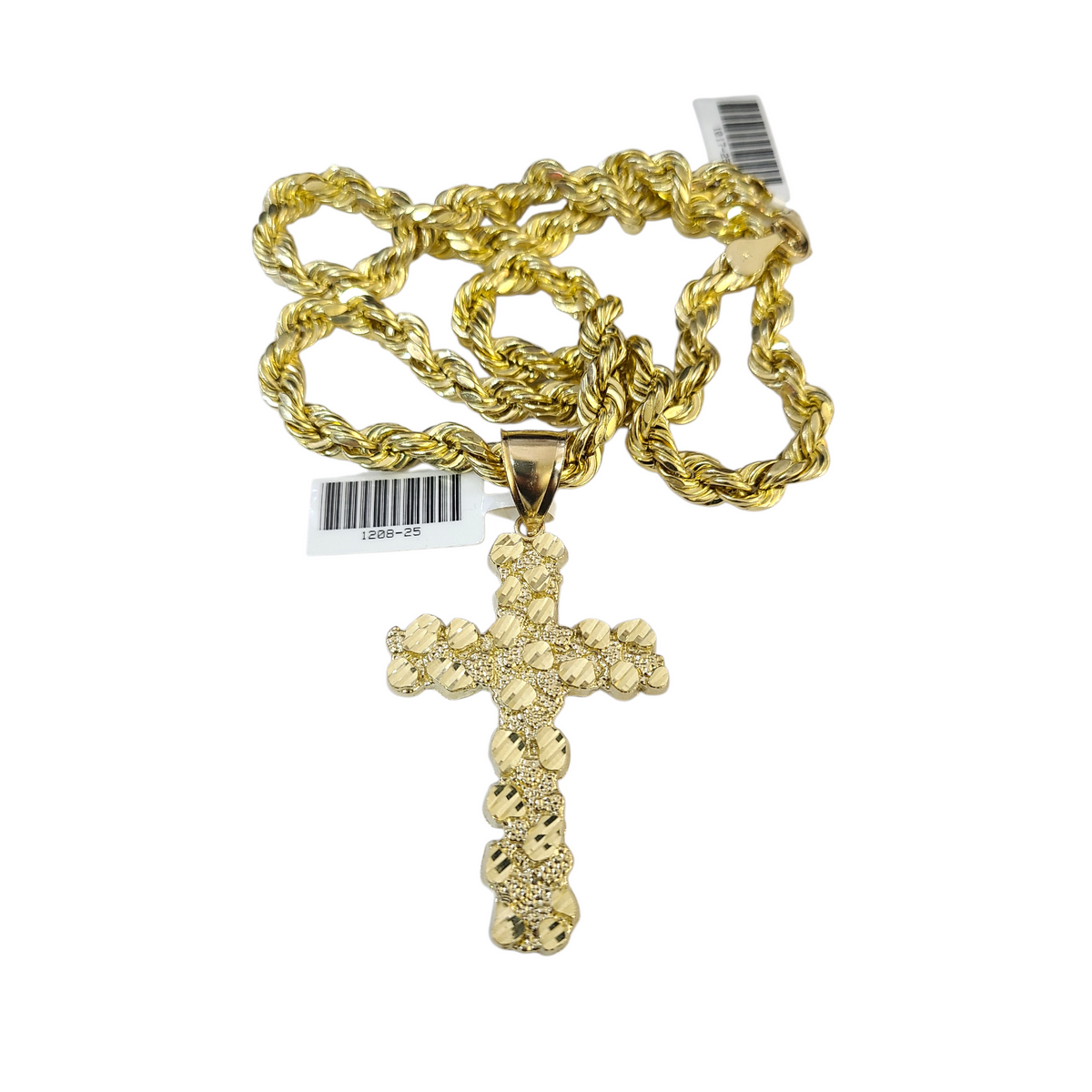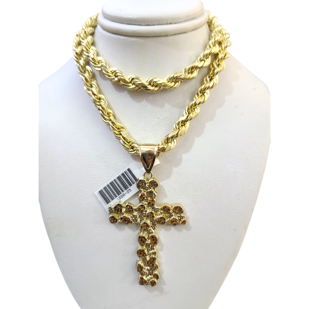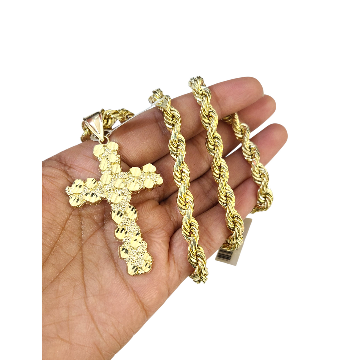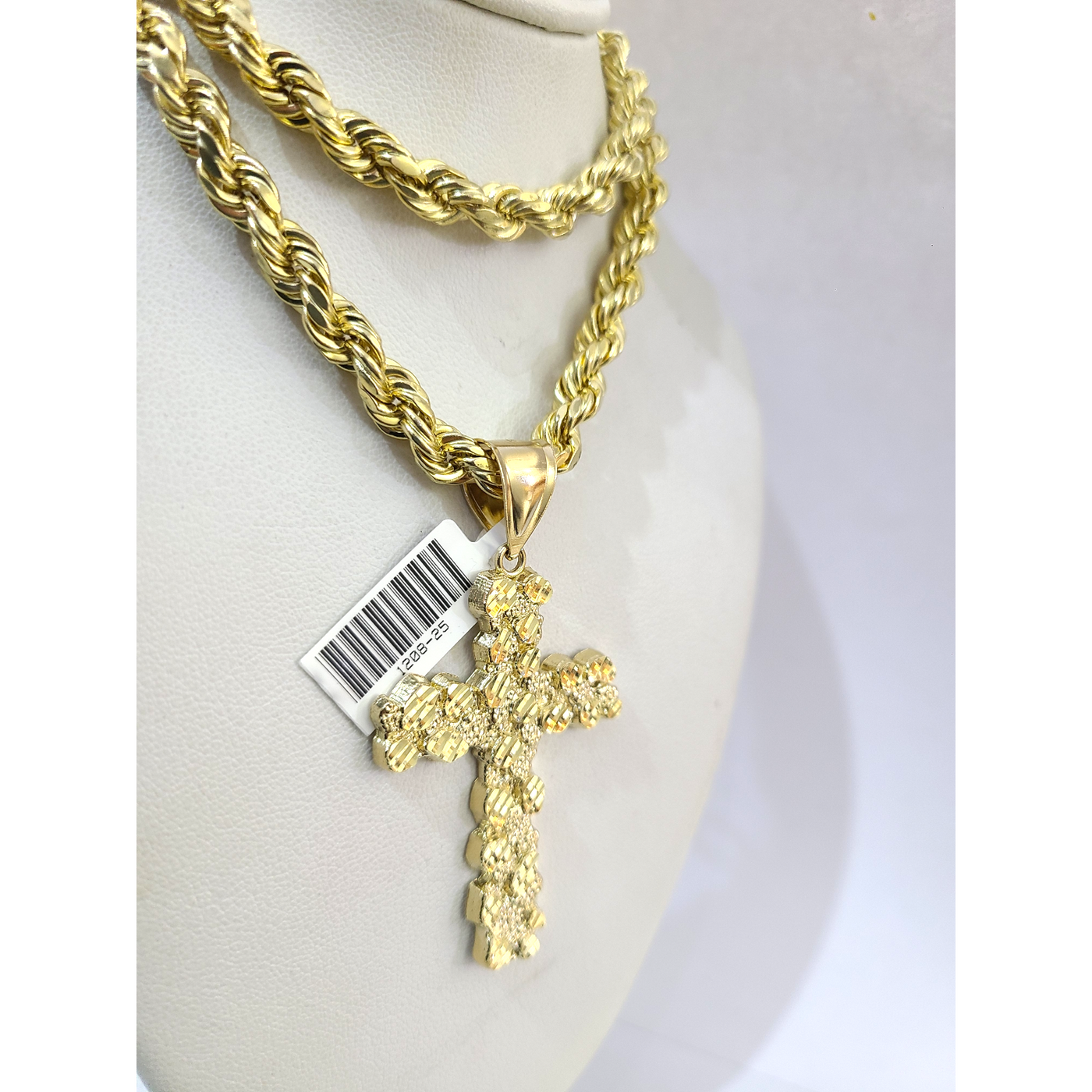 Inform when this item available Real 10k Rope Chain Nugget Cross Necklace Pendant Set 7mm 20"-28" Gold Men