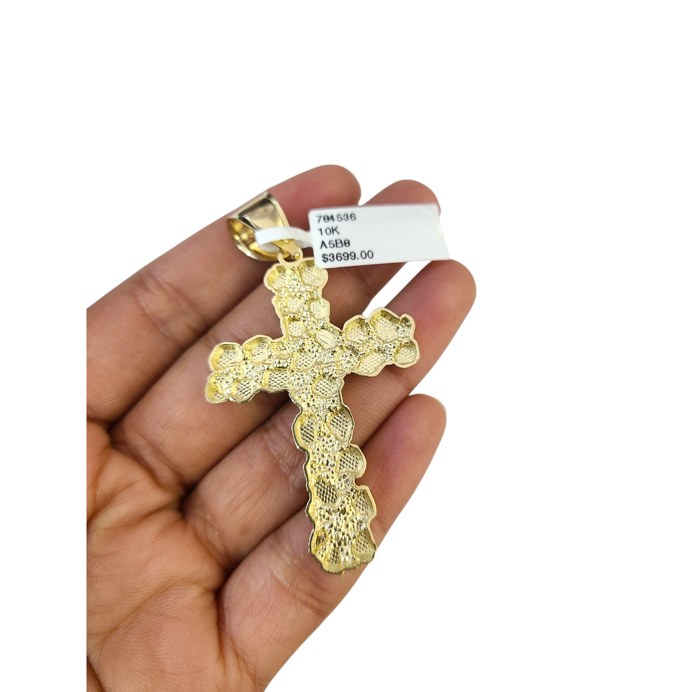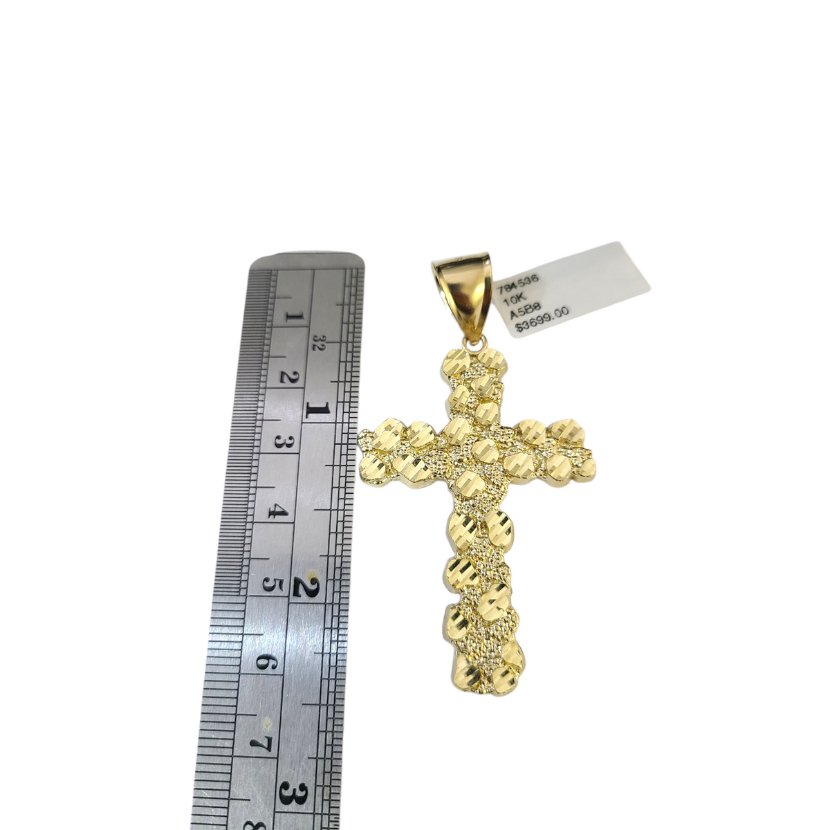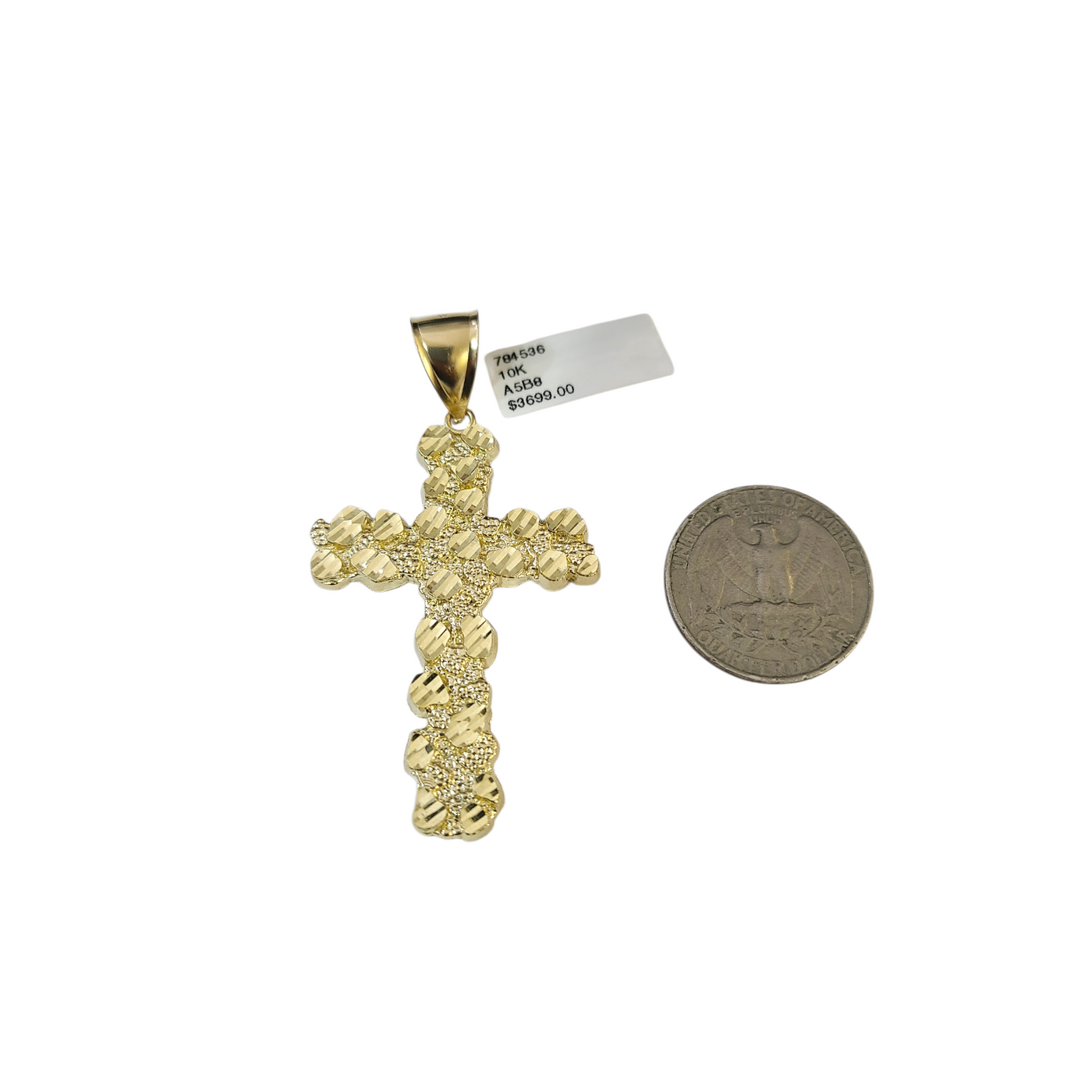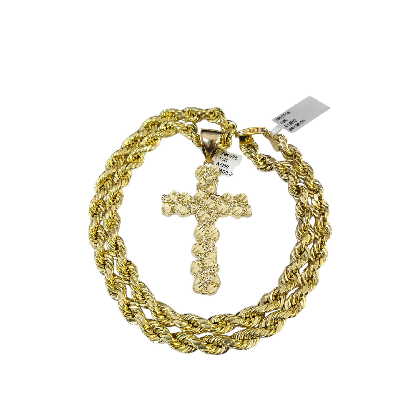 Inform when this item available Real 10k Rope Chain Nugget Cross Necklace Pendant Set 7mm 20"-28" Gold Men
