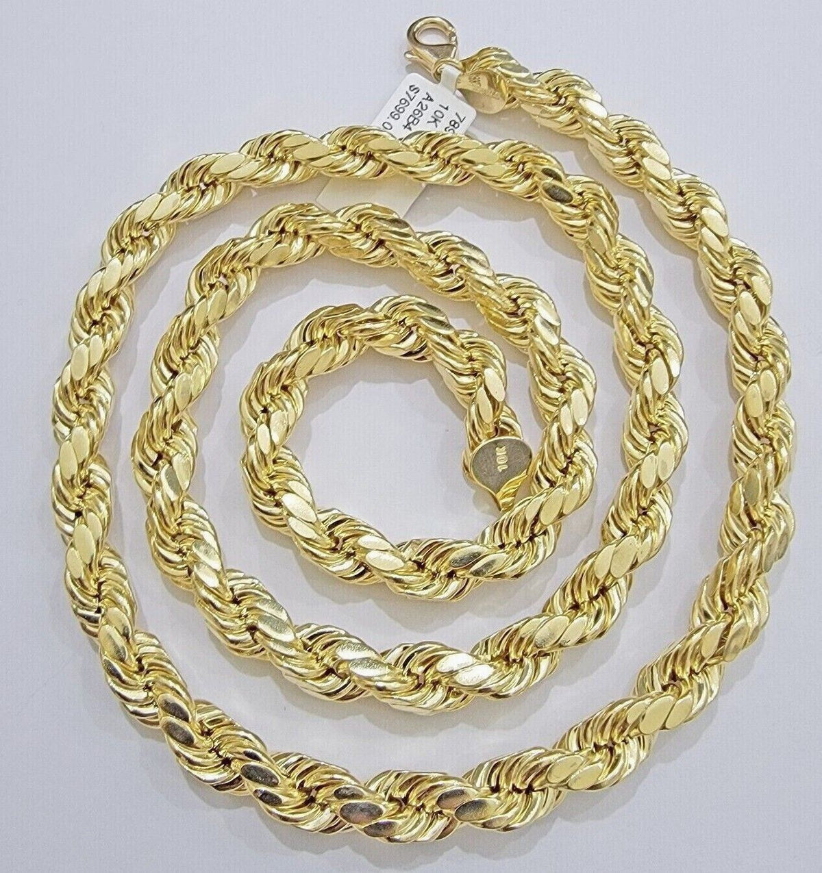 Real 10k Yellow Gold 8mm Rope Chain Necklace 18 in- 30 Inch Diamond Cuts 10kt