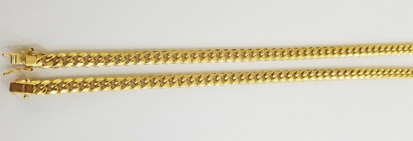 Is Presenting You with This Absolutely Stunning Real 10k Yellow Gold Miami Cuban Chain 6mm, 22 Inches, Box Lock. These Chain's links are very strong and have a safety lock on a sides. These Beautiful Chain will not tarnish, discolor, or fade because they are Pure 10K Gold. We also have them in various another length.