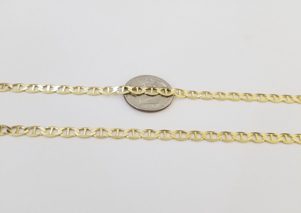 Real 10k Yellow Gold Mariner Anchor Link Chain 22" Inch 4mm Necklace