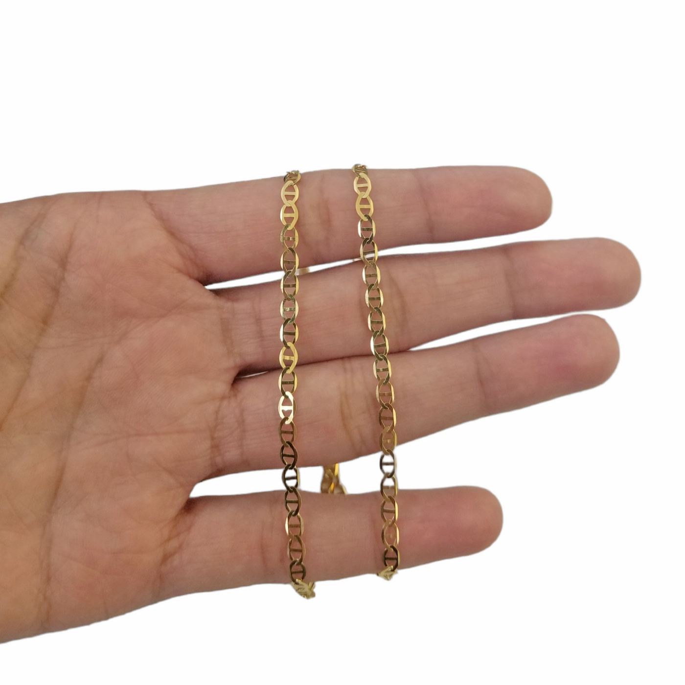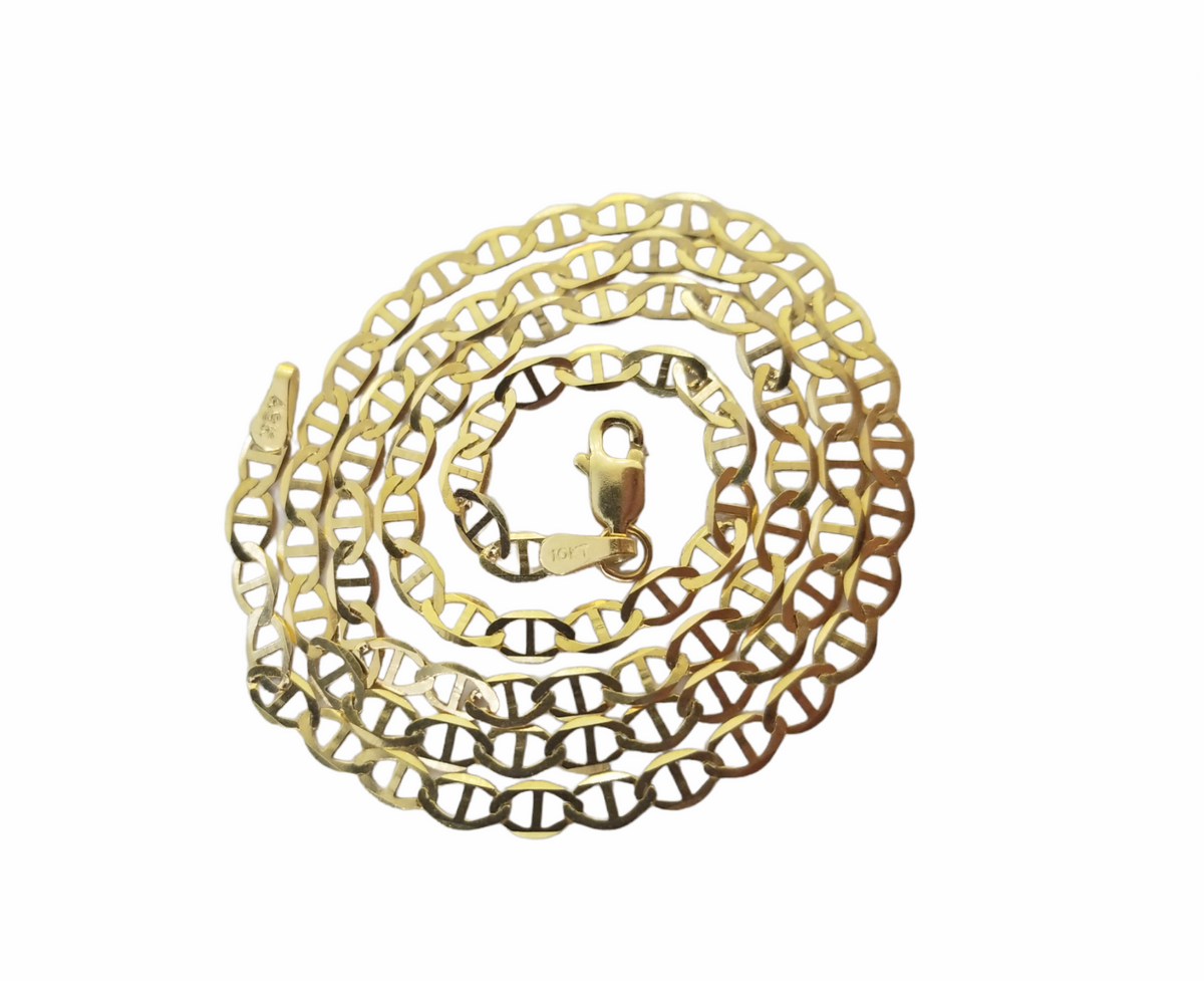 Is Presenting You with This Absolutely Stunning Real 10K Mariner Anchor Link Chain of 3mm in with and 16"-24" in length.These Beautiful Chain And Charm will not tarnish, discolor, or fade because they are Pure 10K Gold. We also have them in various another sizes. Please feel free to contact us if you have any queries regarding the item.