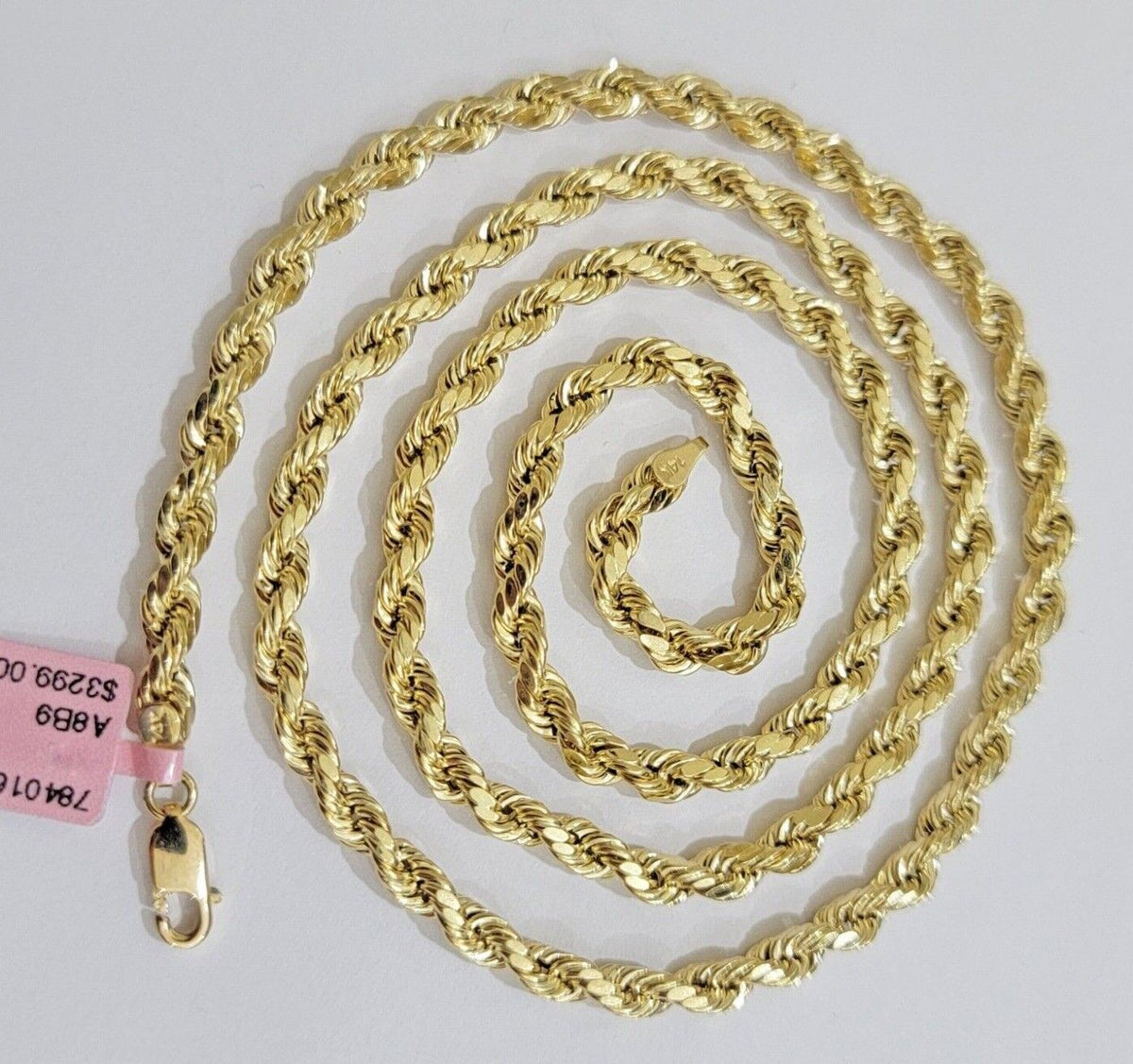 Real 10k Yellow Gold Rope Chain Necklace 4mm 18-28 Inch Diamond Cut Mens 10kt