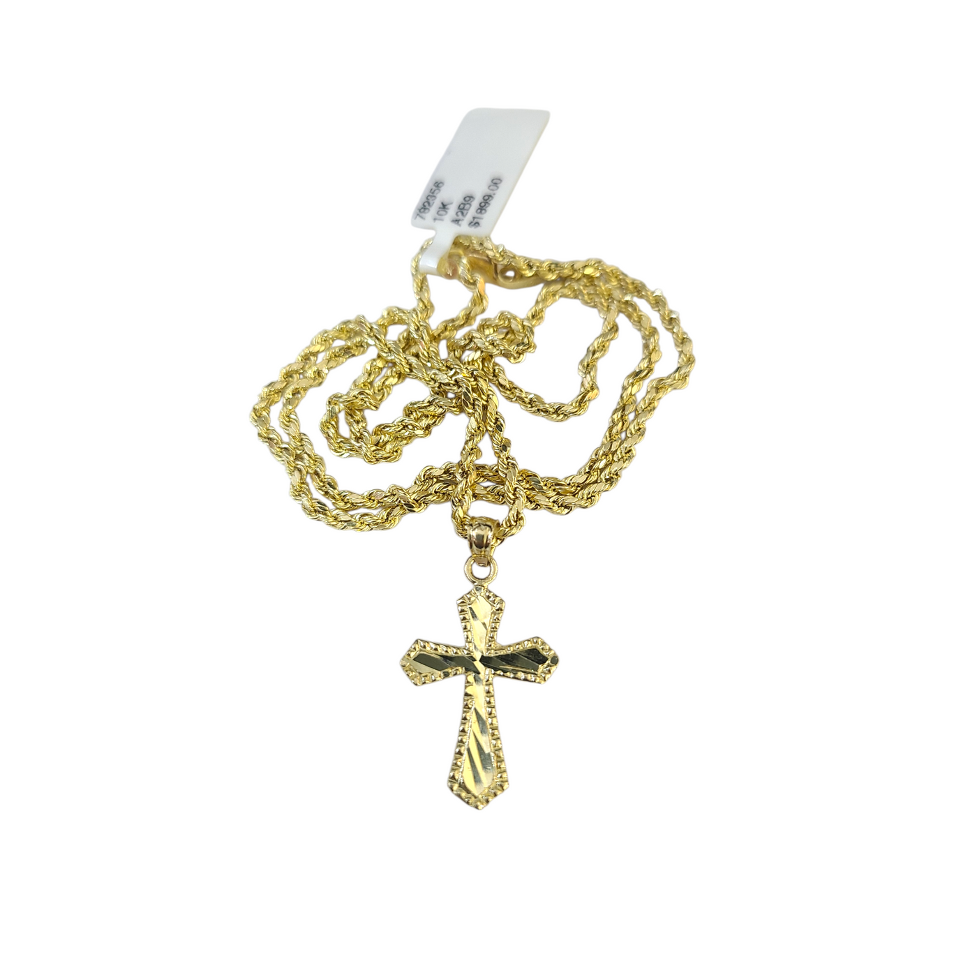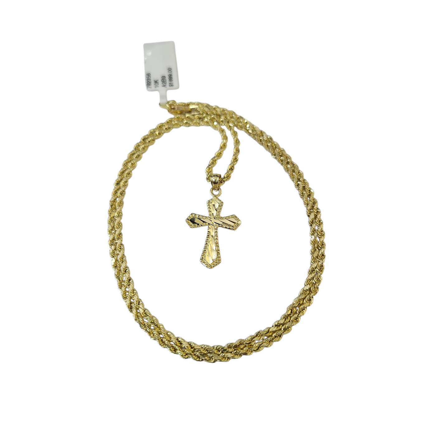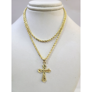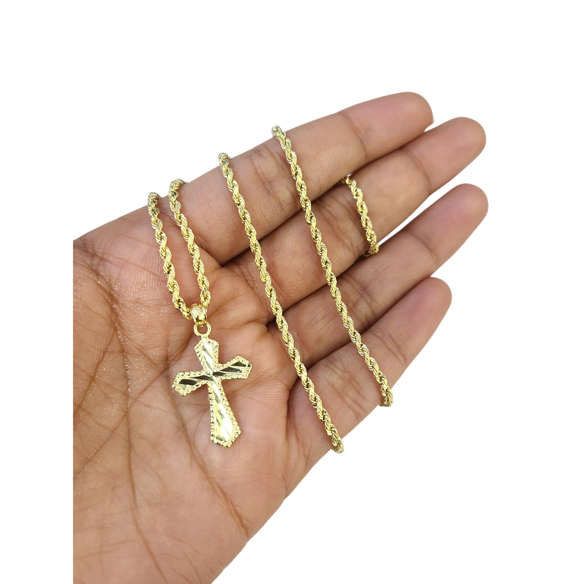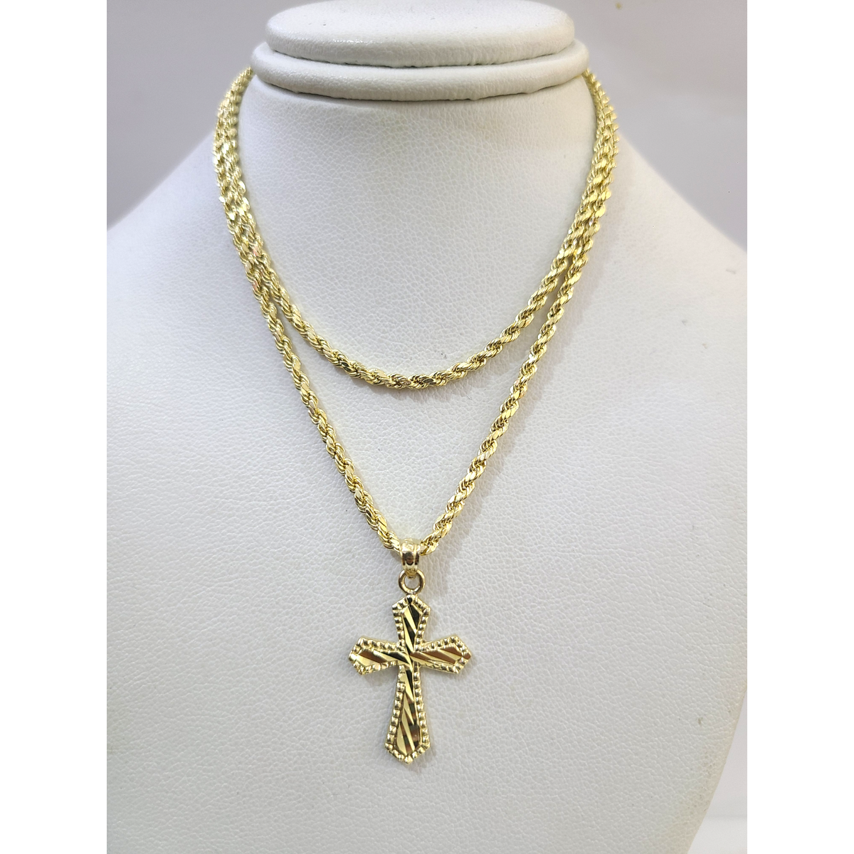Genuine 10k Yellow Gold Rope Chain 16-26 inches 2mm Necklace with Jesus Cross Pendant as a SET. If you are not happy with the way it looks or feels, we do offer 30 - Days FREE Return shipping. Contact us for more information.