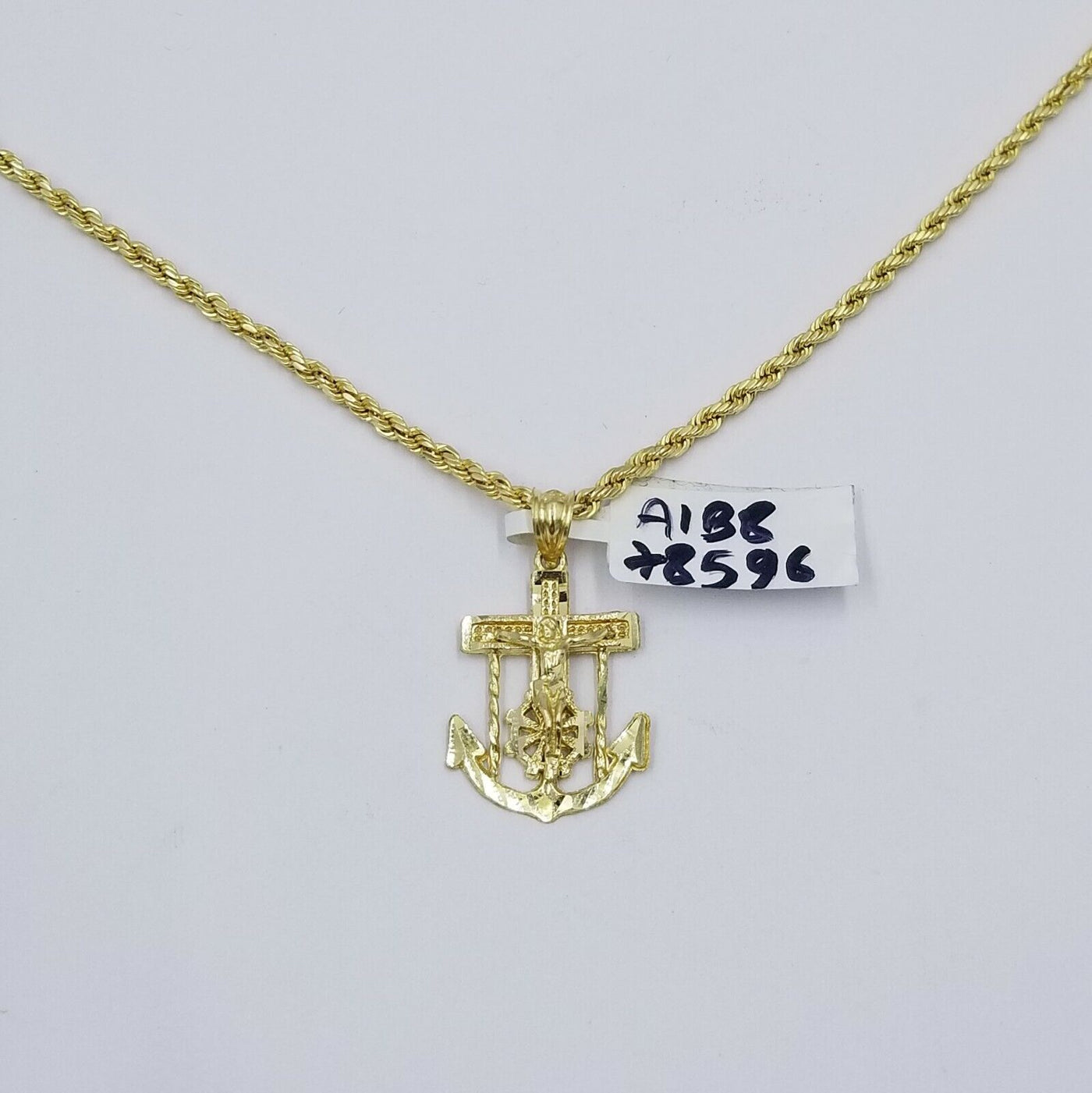 10k Gold Anchor Pendent Rope Chain 2.5mm 18" 20" 22" 24" 26" 10kt Necklace Charm