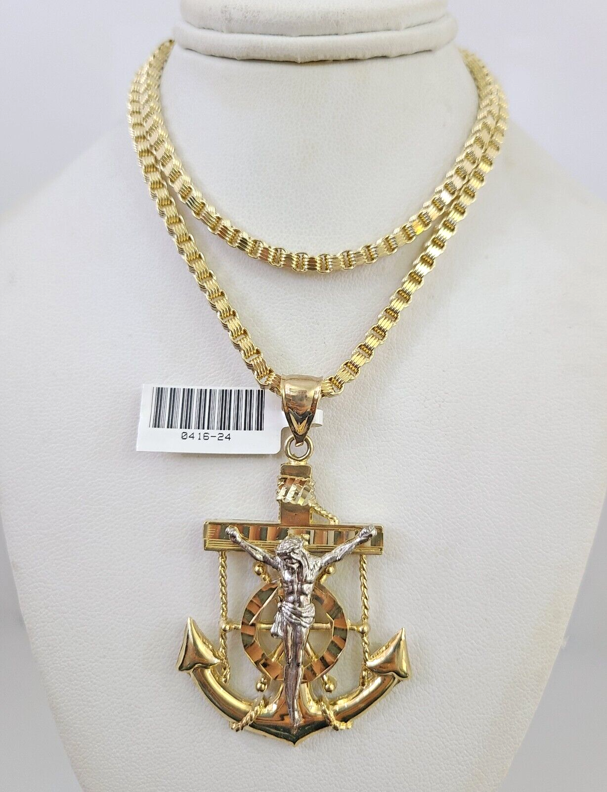 10k Gold Necklace Byzantine Jesus Anchor Charm 20"-30" 3mm Pendant SET Two Tone